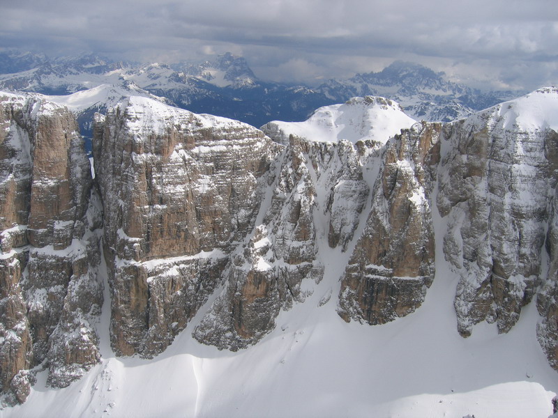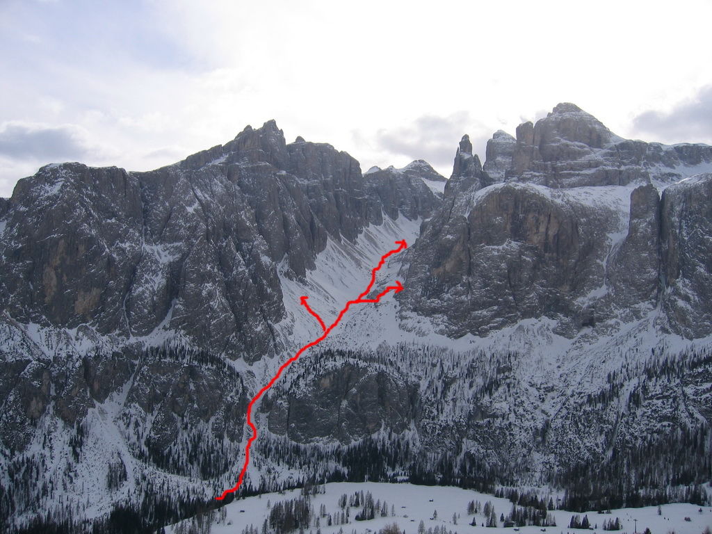 Superski Dolomity - známe lyžiarske stredisko je vo svete pojmom, ale skialp v Dolomitoch? Pripúšťam, pre mnohých veľká neznáma. Rovnako aj pre mňa - až kým som tu nestrávil dve zimy v stredisku Corvara. Bohužiaľ v kuchyni. Za dve zimy som mal presne Dva celé dni voľna. Našťastie som mal aspoň poobedňajšiu pauzu, ktorú som väčšinou prespal... Ale keď som náhodou nespal, stál som na lyžiach a šlapal do hôr. Mojím veľkým šťastím bolo, že z hotela, kde som robil sa dalo za polhodinku prísť na lyžiach k ústiu doliny Val Mezdi. (Sellagruppe)