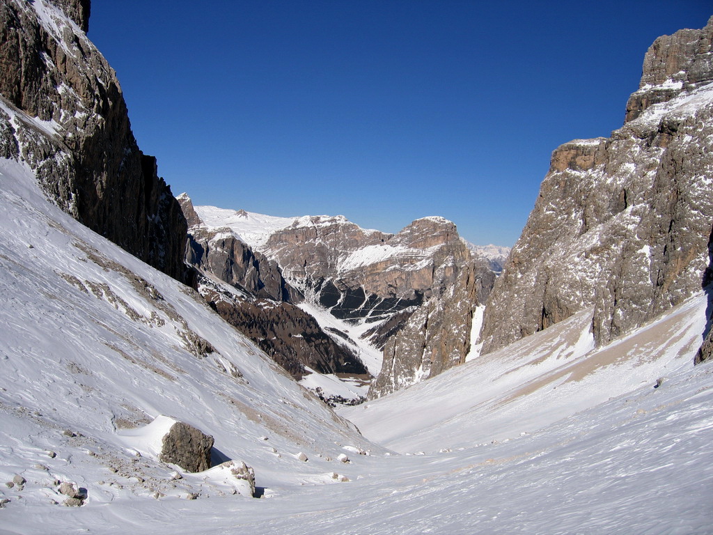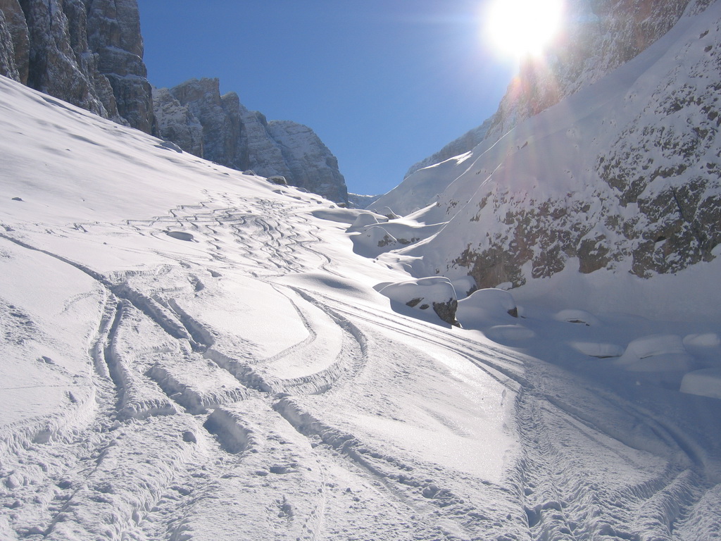 Toto však nebol môj prípad, ja som šlapal z druhej strany, vždy pokiaľ ma pustil čas. Pár krát až ku chate (v zime je zavretá). Zimný výstup na Boe mi zmarilo počasie. Proti mne lyžovali dolinou skupinky ľudí, často aj s horskými vodcami. Ja som ich volal "lavínové sondy". vždy boli dolinou natiahnuté nejaké stopy a tak som sa cítil bezpečnejšie...