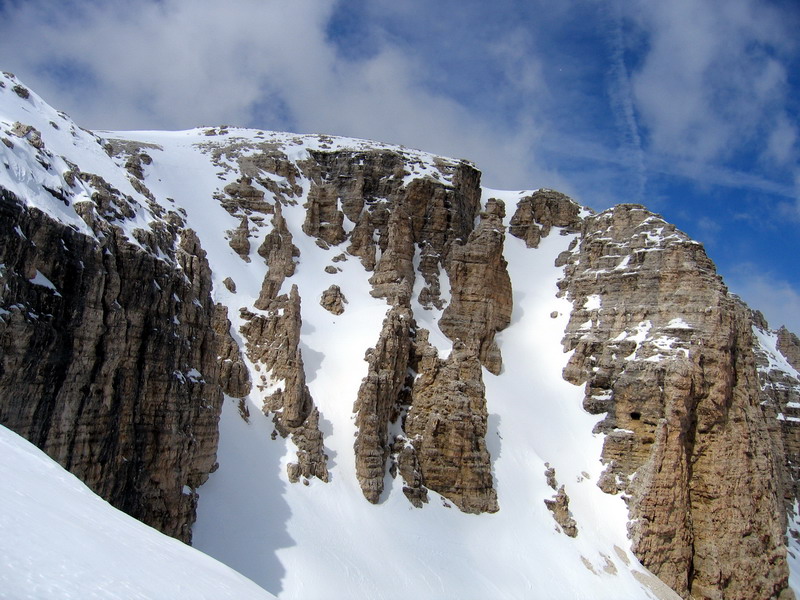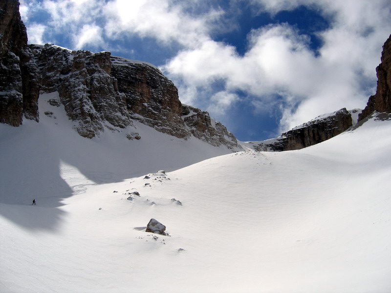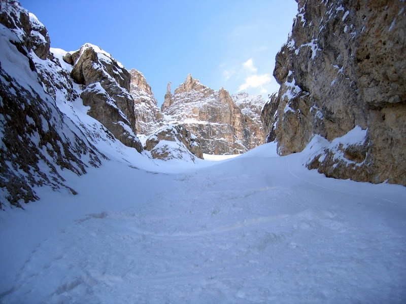Z možností, ktoré ponúka skialpinistom táto časť Dolomitov som bol očarený. Dalo by sa to zhrnúť asi ako:"Na malej ploche veľa muziky." Val Setus je len akousi vstupnou bránou do rozprávkovej ríše. Cez úzku roklinu(kaňon) sa dostaneme na prvé poschodie torty a tu začne ozajstné maškrtenie.