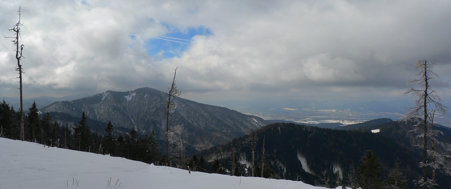 Po brutálne teplom konci februára na severe Turca poriadne ubudlo bieleho, takže po štarte z Krpelian som si veľmi rýchlo rozmyslel zachádzku cez Kopu (po žltej) a rafal som rovno do Ľubochnianskeho sedla (po modrej). Aj tak som musel chvíľu po vlastných, kým som sa dostal na sneh. Ten bol ale rýchly – zmrznutý firn, na ňom milimeter nového. Lyže robili riadny rachot :-) Ale v strmine na Nolčovské hole to výborne držalo. Na lúkach okolo Vyšného Rudna parádna, rýchla šmýkačka vpred. Sranda začala za sedlom Príslop - stúpaním na Kľak. Typická veľkofatranská kľučkovačka pomedzi mladinu do svahov, za sklon ktorých by sa ani tatranské žľaby nehanbili. Na vrchol Kľaku už som samozrejme musel s lyžami na batohu.