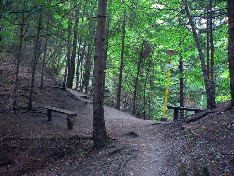 Malé nocľahy sú ozaj malé – také sedielko, skryté v lese. Lavičky poslúžia boľavým nohám. Keby sa vám zdalo, že počujete hlasy akoby priamo zo stromu nad hlavou, to sa len blížia turisti z opačnej strany – tak prudko odtiaľ chodník klesá. Veď aj my budeme - o chvíľu do doliny Obšívanka. Cestou sa treba zamyslieť, koľko úsilia asi stálo naplánovanie a potom vybudovanie týchto chodníkov!