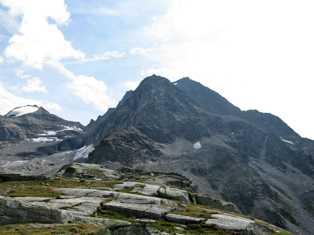 Doliezam na hrebeň. Vertainspitze má dva vrcholy. Pod tým západným je tabuľka. Mladý domáci chalan sa tu zabil asi pred dvoma rokmi. Hrebeň smerom na Angelusscharte je už naozaj ako mínové pole. Ten radšej zo svojich plánov vypustím.