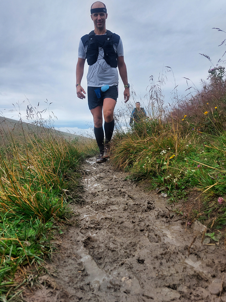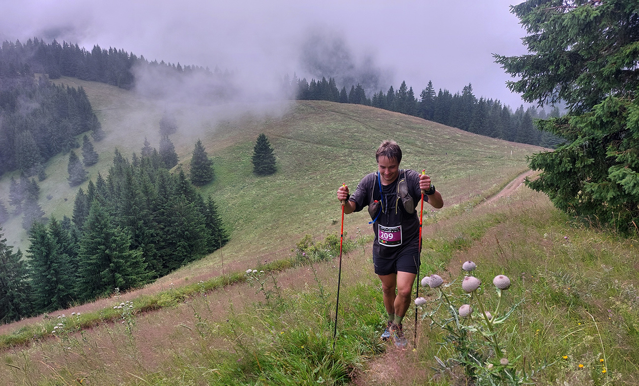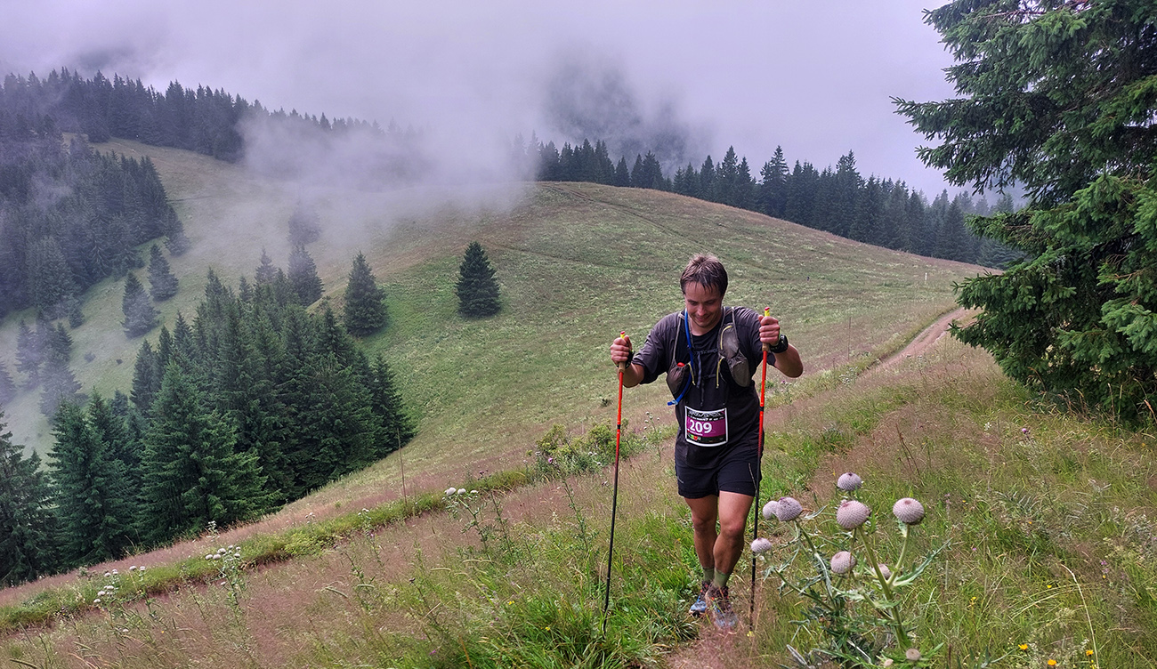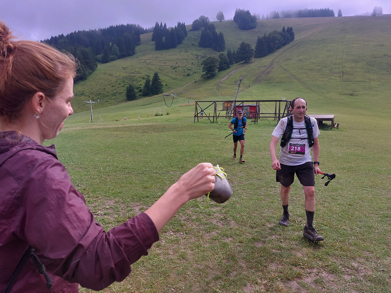 Predpeklie teda rýchlo prehrmelo a behanie až po K2 pod Borišovom (pre prvých hádam až po K3) bolo príjemné. Teda až na ten magľajz pod nohami na viacerých miestach, chcelo to zvlášť dobrý dezén. Teplota ideálna, ďaleké výhľady, biele útržky mrakov medzi kopcami a pod Ploskou stádo bečiacich kosačiek.