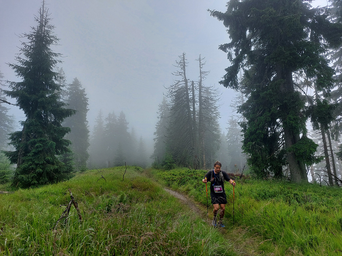 Skrátil som si to priamo cez Ploskú a zhora som sledoval, ako sa druhá čierna stena blíži z juhozápadu. Zdalo sa mi aj, že zdola od chaty nik nejde - aj som si myslel, či tam orgovia bežcov nezastavili. Ale že nie. A zas to bolo rýchle, len oproti prvej búrke o dosť intenzívnejšie, aj blesky už šľahali viac. Prečkali sme to viacerí na okraji lesa pod Čiernym kameňom, aspoň nie na otvorenom hrebeni. Len sme sa divili niektorým, ktorí úplne v pohode pokračovali práve do najhoršieho a presne na otvorené pláne smerom pod Minčol. Keď potom niektorí hovorili, ako to okolo nich bilo do zeme, až sa mne chlpy ježili.