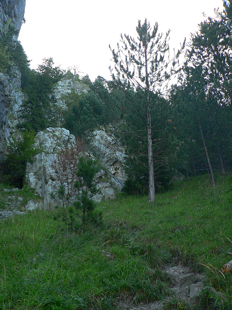 Dole dolinou len kúsok, minul som výjazd z bajktrailu Anakonda (TU) a o chvíľu už ma ťahala výrazná odbočka doprava, do starého lomu pod Hoblíkom. Na jeho začiatku zas doprava – ani tu sa nedá minúť odbočka z rovného do strmého chodníka, ktorý cikcakmi neomylne vedie hore, v ústrety bralám. A k nástupu do cvičnej ferraty, ktorej železo je ale zavesené dostatočne vysoko, aby nevybavených náhodných okoloidúcich veľmi nelákalo štverať sa hore. Aj pokyny na ceduľke hovoria jasne. Na vyhliadku nad ferratou sa dá dostať samozrejme zhora po chodníku.