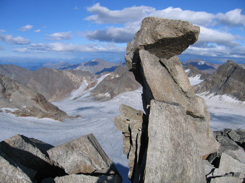 Pri letnom výstupe ma trochu prekvapil fakt, že chodník od ľadovca už nie je značený, ani nijako upravený. Jednoducho klasická VHT. Časom som si už zvykol nato, že trasy zaznačené na mape červenými bodkami v teréne nie sú nijako značené a na občasných kamenných mužíkov sa nedá nijako spoľahnúť. Tu nastupuje do práce mapa a vlastná hlava. Vysokohorskí turisti v Alpách musia byť zvyknutí na zodpovednosť samých za seba a za svoje rozhodnutia. Neexistuje tu sezónna uzávierka a iné zákazy, ktoré by ich mali chrániť pred vlastnou nerozvážnosťou...