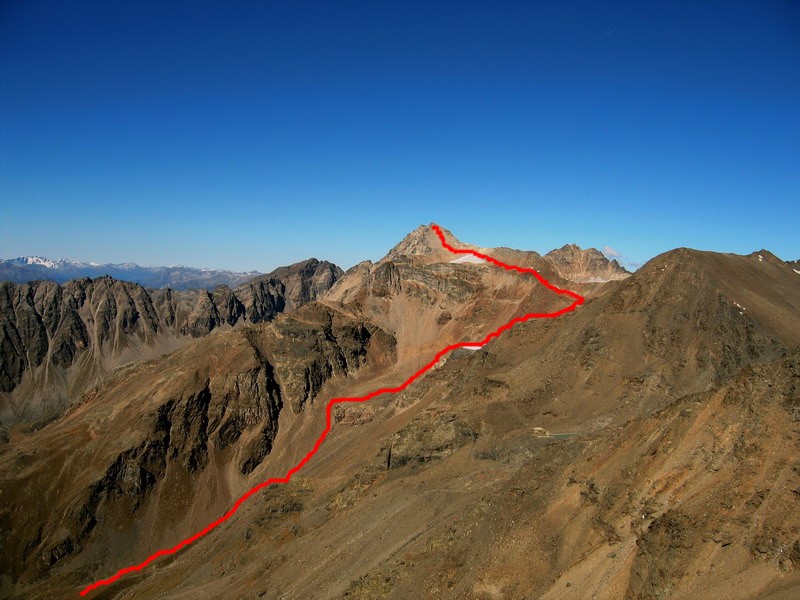 Normálka na vrchol vedie priamo zo Suldenu údolím Rozim. Všetky moje výstupy viedli touto trasou. Na vrchol sa však dá vystúpiť aj hrebeňom od Düsseldorfer hütte, je to však už ľahšie lezenie po hrebeni s lámavou skalou. Tomu treba prispôsobiť aj výstroj (lano+lezecká výstroj).