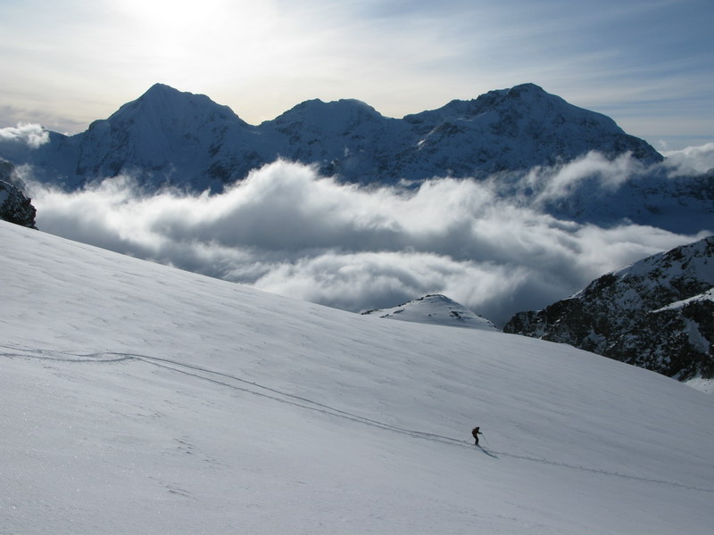 Slabé zimy spôsobili, že som sa prvé dve sezóny v Suldene na východnú stranu, ktorej kraľuje práve Vertainspitze veľmi nepozrel. O to väčšia bola moja radosť, keď som počas tretej zimy v Suldene pri poobedňajšej obhliadke Rozimtalu uvidel stopy vedúce až na vrchol. Využil som najbližšie voľno a vystúpil som na Vertain s lyžami. Vrcholová časť bola vyfúkaná a tak som posledných 100 metrov už absolvoval bez lyží, ktoré som nechal dole. O tri týždne boli podmienky ešte lepšie a tentoraz sa mi podarilo vystúpiť na vrchol s kamarátom Jensom. Viacej podrobností sa dozviete z fotiek, ktoré som urobil počas oboch túr.