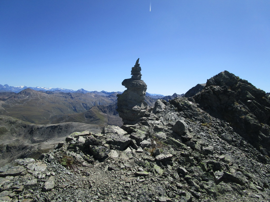 Až potom sa vydávam po hrebeni smer Crasta Burdun. Hľadám správny smer, musím sa aj vraciať späť ale nakoniec ma to pekne pustí hore na hrebeň. Som už za najvyššou časťou hrebeňa keď odrazu zbadám ako oproti mne postupuje človek. Je sám. O to väčšie je prekvapenie keď spoznávam Borisa. Slováka žijúceho v Engadine s ktorým už mám nejaké túry za sebou.