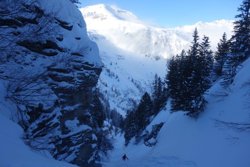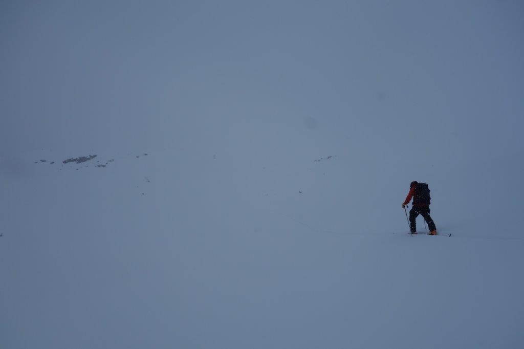 Piatková predpoveď sľubuje vietor a sneženie preto nie je priestor na žiadne veľkolepé túry. Jarouš vyberá miestnu klasiku Kalkbretterkopf v údolí Angertal. Začíname pri údolnej stanici lanovky a krátko na to začneme naberať výšku strmou stopou lesom. Zimná rozprávka. Stromy olepené množstvom snehu, takmer bezvetrie a čerstvo prešliapaná stopa. Tesne pod Gadauner almami vychádzame z lesa. Viditeľnosť biedna, vietor silnie a sneží. Našinec neznalý pomerov by to asi mal už zabaliť, Jarouš však vie ako bezpečne ďalej, tak pokračujeme smerom za našim dnešným cieľom. Túra, ktorá je za dobrých podmienok veľmi populárna a hostí desiatky skialpinistov, dnes nie je taká vychytená. V doline stretávame možno tri dvojice a na vrchol idú za nami len dvaja odvážlivci. Pod vrcholovým hrebeňom nasadíme haršajzne, ostrý hrebienok na pešo a k vrcholu zase na lyžiach. Nezdržujeme sa. Zhodiť pásy, dotiahnuť lyžiarky a ide sa dole. Lyžujeme vrcholových žliabkom ufúkaným snehom. Asi po 100 výškových metroch to však pride. Prašan, zo začiatku trošku zmenený vetrom, čím nižšie, tým lepšie podmienky. Skutočná odmena. Vietor nám už vôbec nevadí a užívam si prvé oblúky tejto zimy a hneď v takomto perfektnom snehu. Dole potokom a kúsok po zjazdovke. Prvých 1200 výškových metrov tejto zimy nemalo chybu napriek tomu, že bolo zamračené so snežením.
