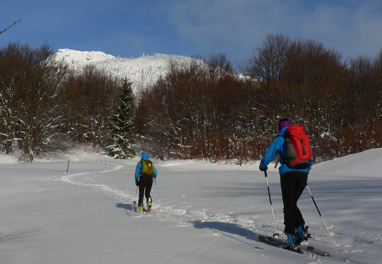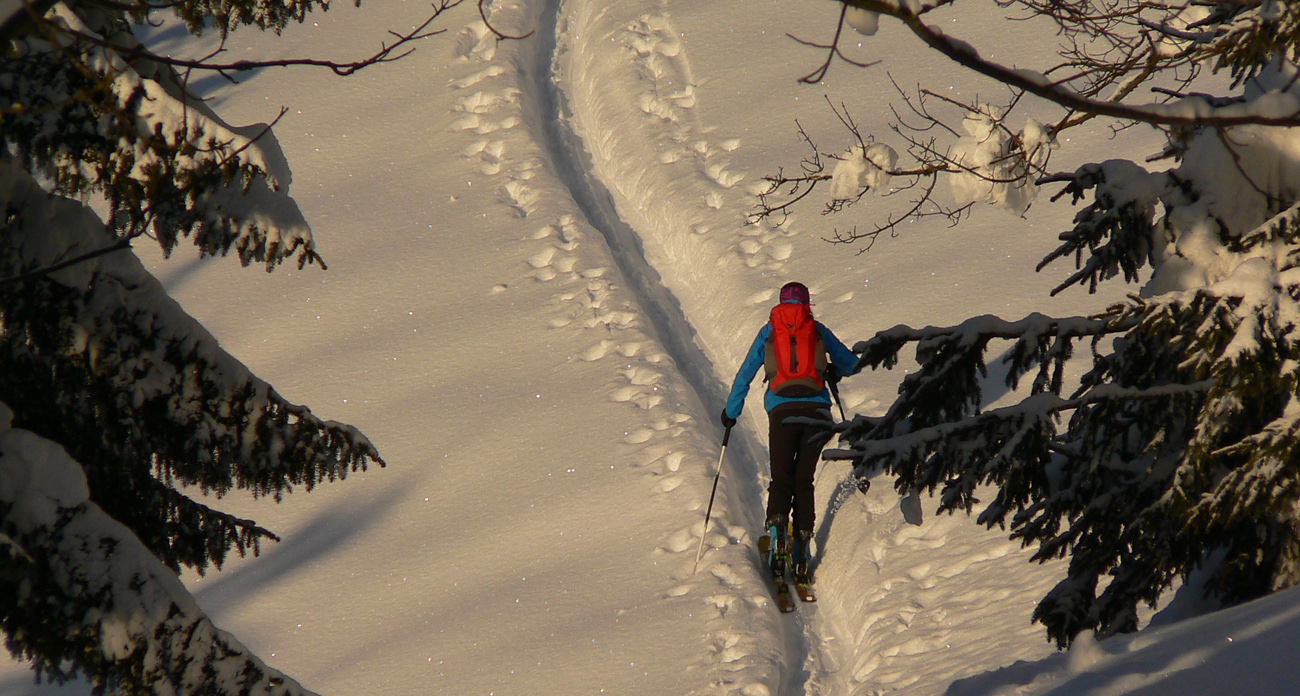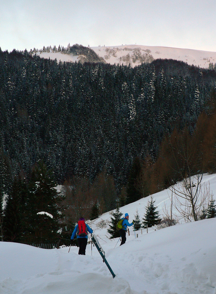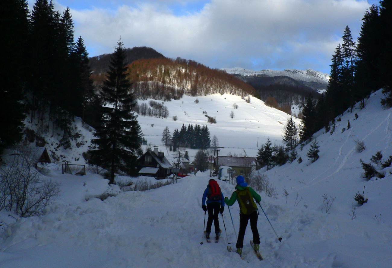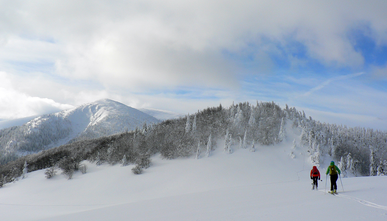 Začiatok na Donovaloch ešte za ranného šera a štípajúcej zimy, keď sa slnko ešte len dralo z mrakov nad Prašivou. Skialpová „trasa B“, príjemne stúpajúca lesom do sedielka pod Motyčskou hoľou. Krátka, ale parádna prachovačka dole do doliny a leštenie „domorodej“ skialpovej stopy až do Vyšných Revúc, na vyšný koniec.