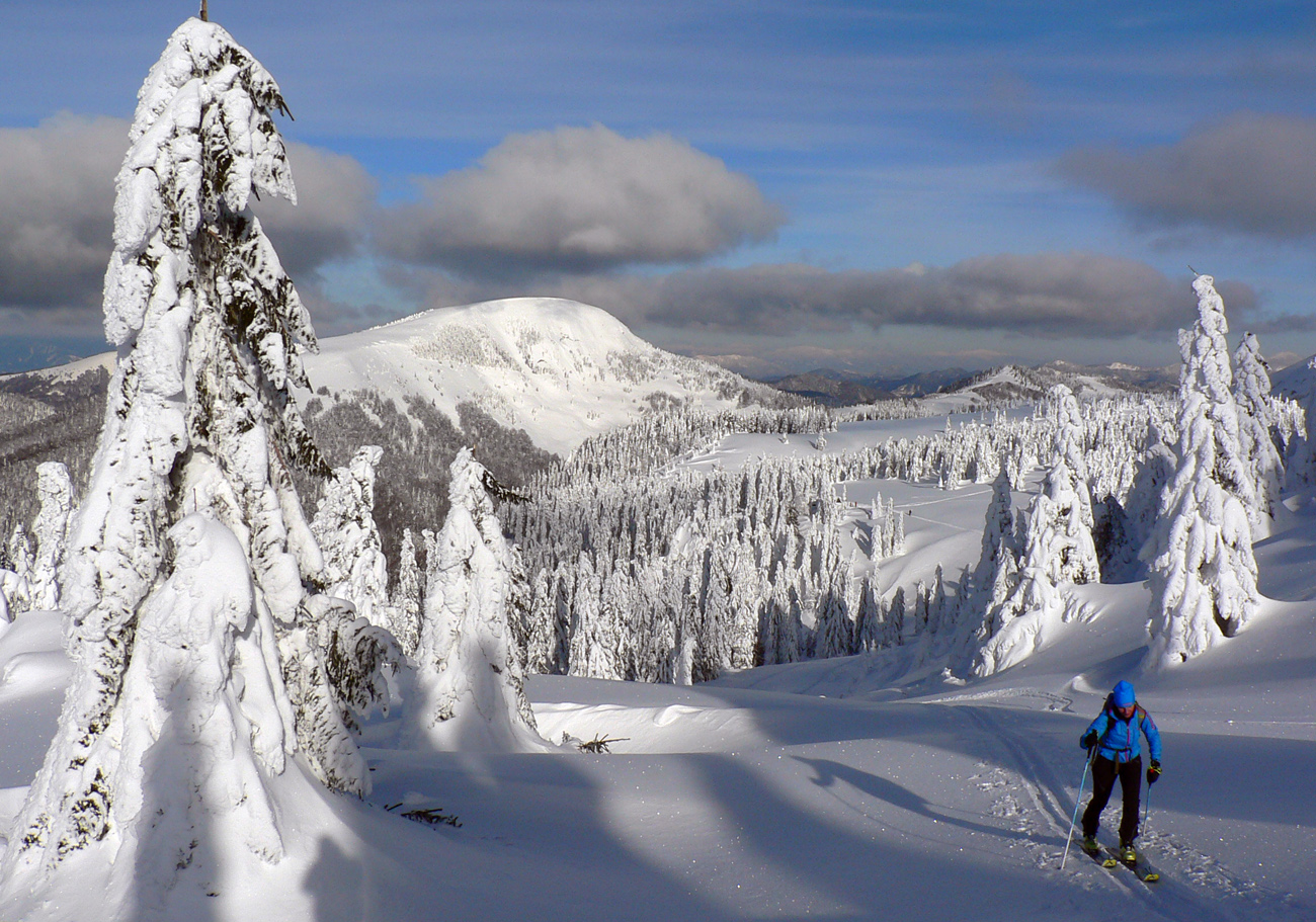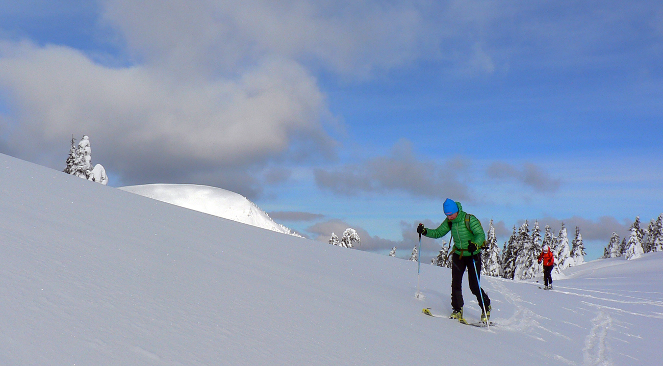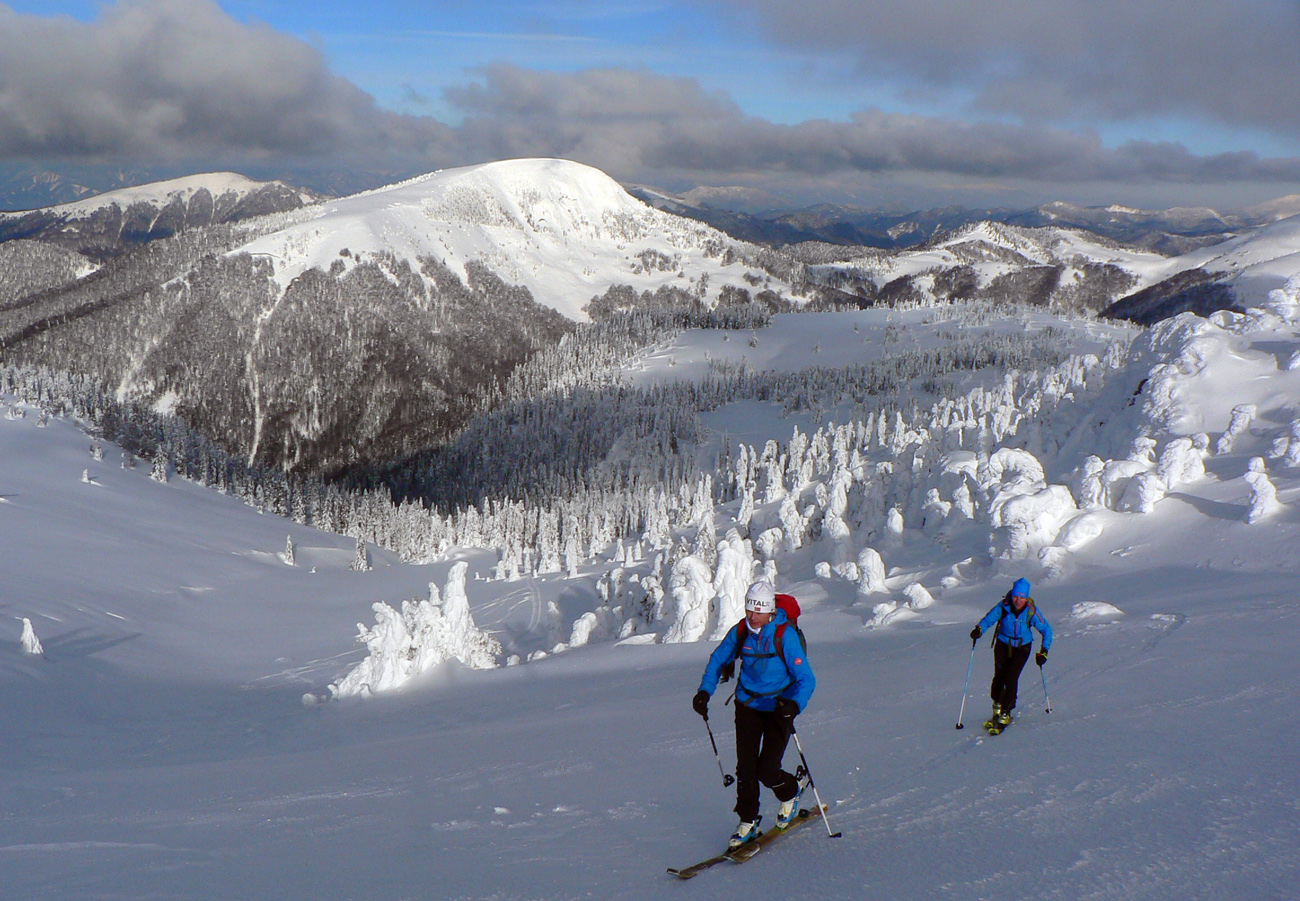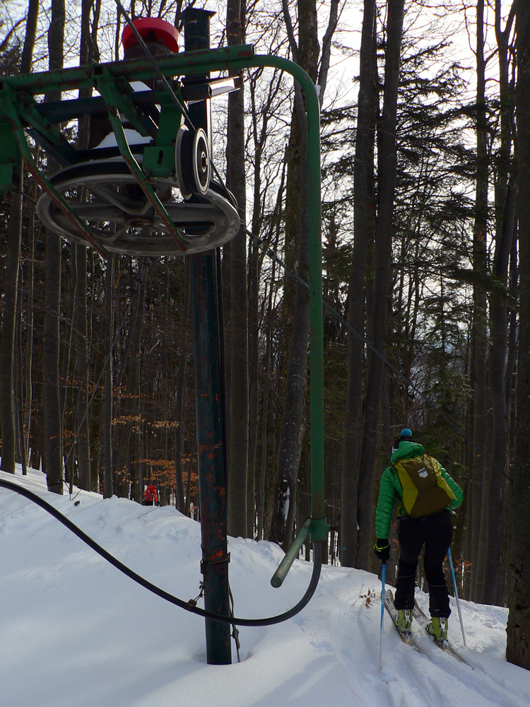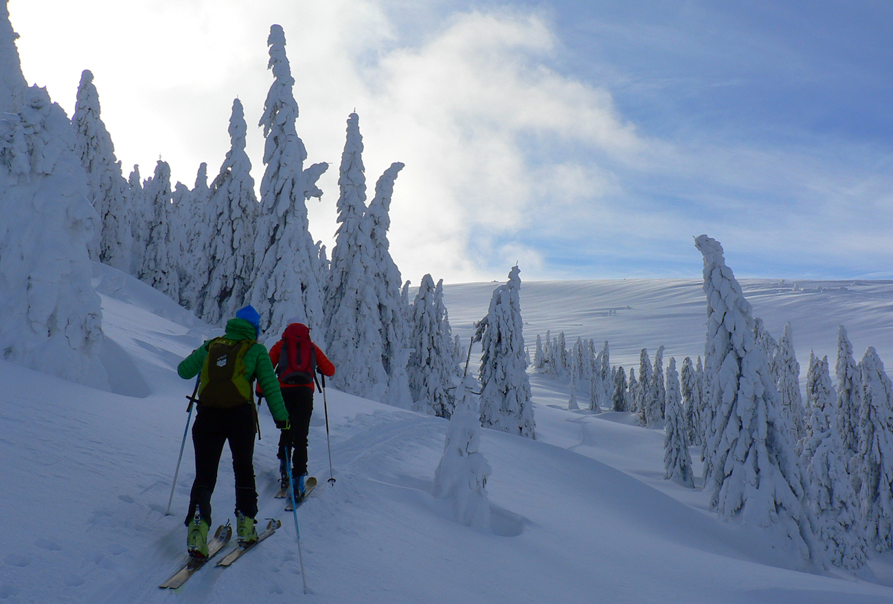 Začiatok na Donovaloch ešte za ranného šera a štípajúcej zimy, keď sa slnko ešte len dralo z mrakov nad Prašivou. Skialpová „trasa B“, príjemne stúpajúca lesom do sedielka pod Motyčskou hoľou. Krátka, ale parádna prachovačka dole do doliny a leštenie „domorodej“ skialpovej stopy až do Vyšných Revúc, na vyšný koniec.
