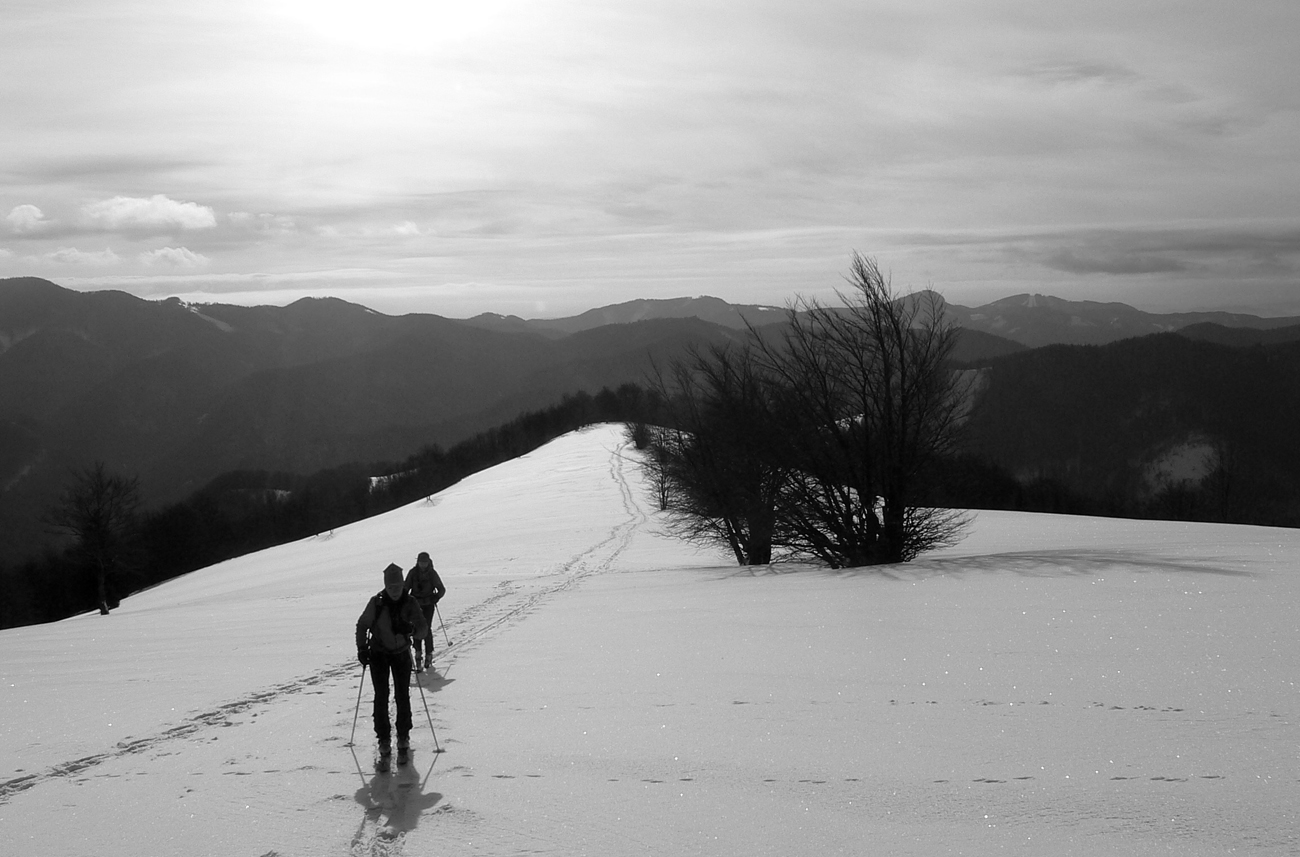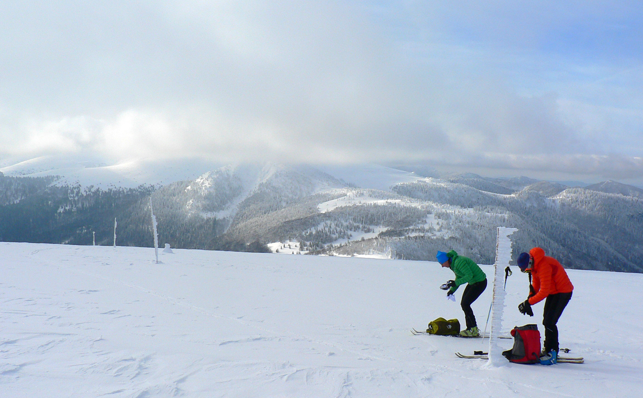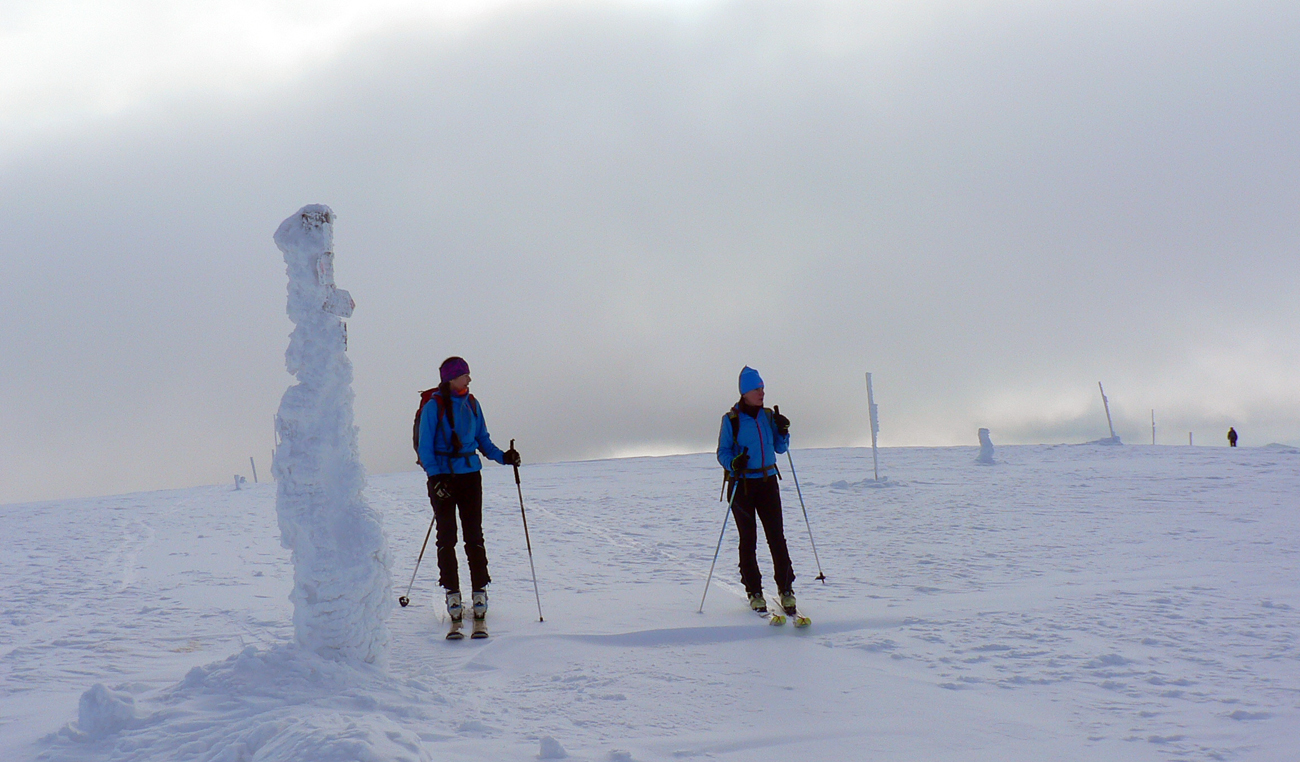 Tak konečne odmena po nekonečných týždňoch sneženia, hmlenia a pohybu v mrakoch a fujakoch. Deň ako maľovaný Mrázikom: chladný, ale absolútne bez vetra (Aj na hrebeni!), v rozprávkovo zasneženej krajine a na dôvažok v dobrej spoločnosti. Dohodnutý v piatok večer viac – menej náhodne a zrealizovaný v sobotu.