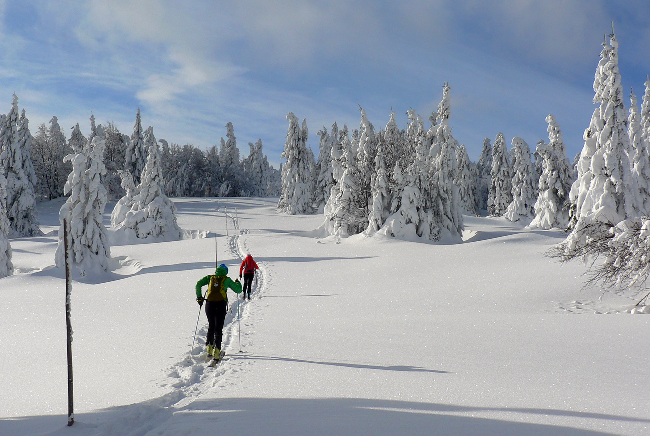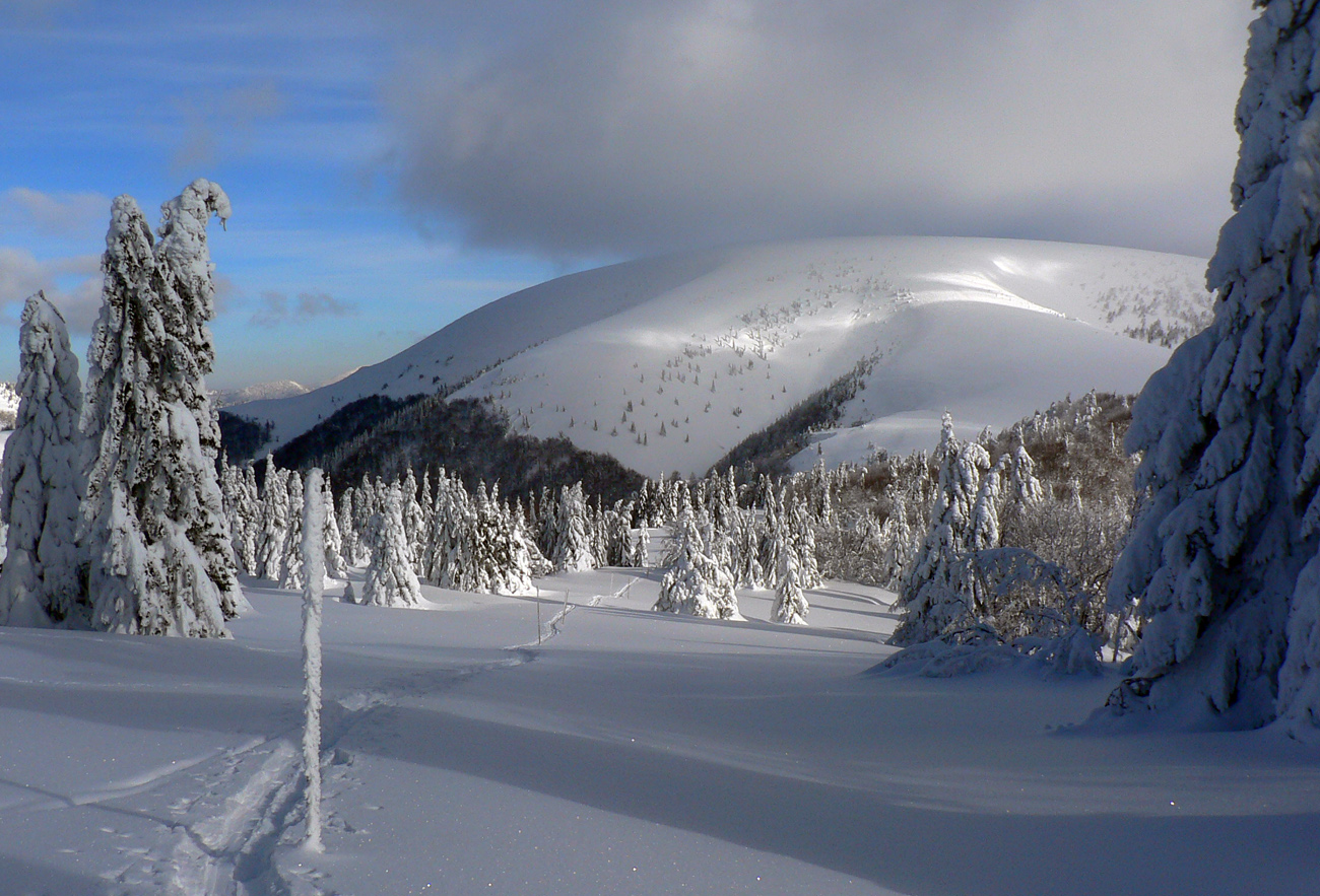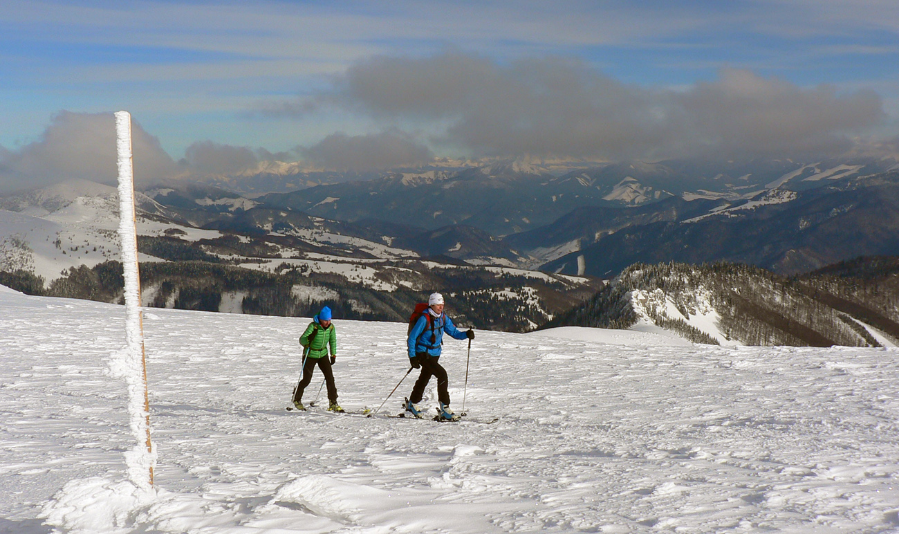 Tak konečne odmena po nekonečných týždňoch sneženia, hmlenia a pohybu v mrakoch a fujakoch. Deň ako maľovaný Mrázikom: chladný, ale absolútne bez vetra (Aj na hrebeni!), v rozprávkovo zasneženej krajine a na dôvažok v dobrej spoločnosti. Dohodnutý v piatok večer viac – menej náhodne a zrealizovaný v sobotu.