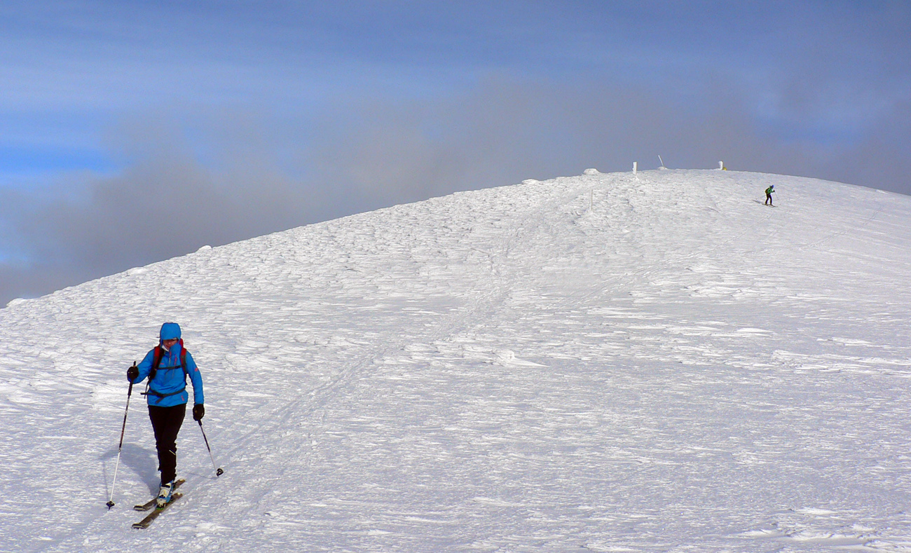 Do tvrda vyfúkaná Ploská (smerom hore aj dole), kde sa ale dali nájsť aj miesta relatívne záveterné, pre lyžovačku pohodlné, nehrkotavé. Ďalších pár pekných oblúkov do zbierky.