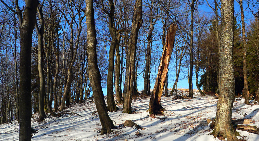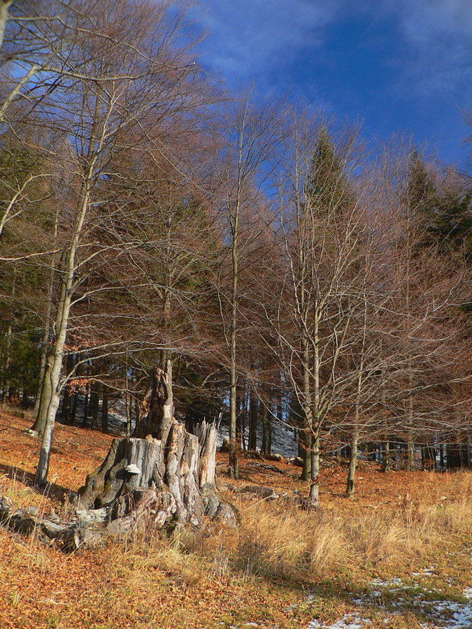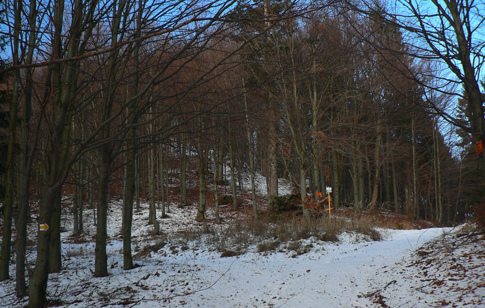 Vnáram sa do lesa medzi borovice, rýchlo ich ale vystriedajú smreky a buky, tak ako lúčnu cestu strieda lesná, ale „zachovalá“. Stále by sa dalo na bajku, aj stúpanie je mierne: