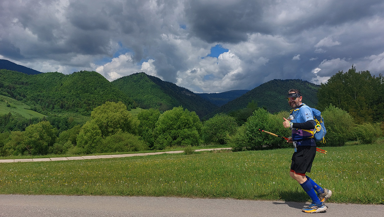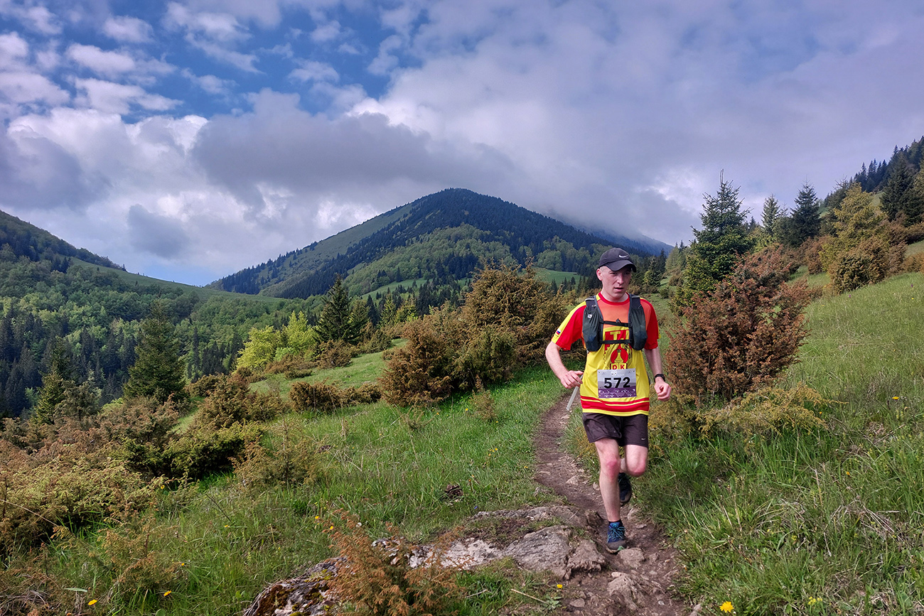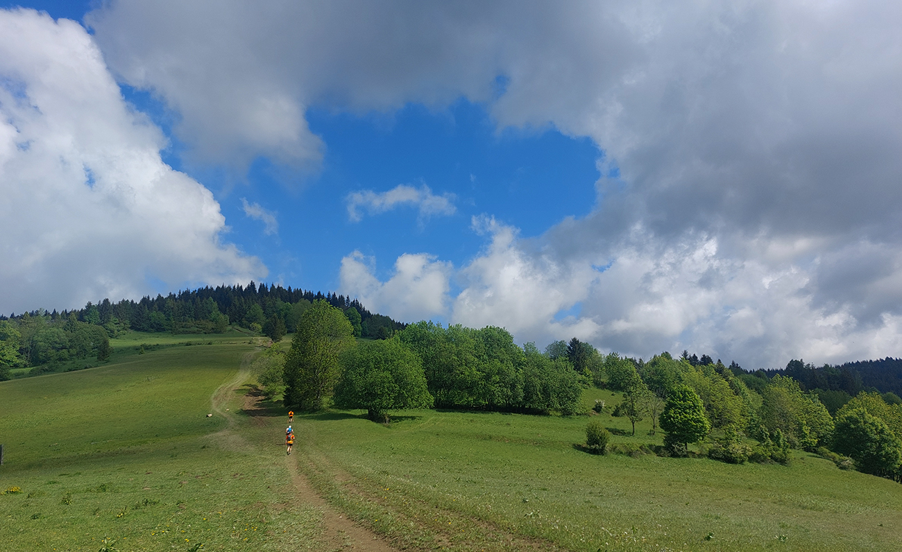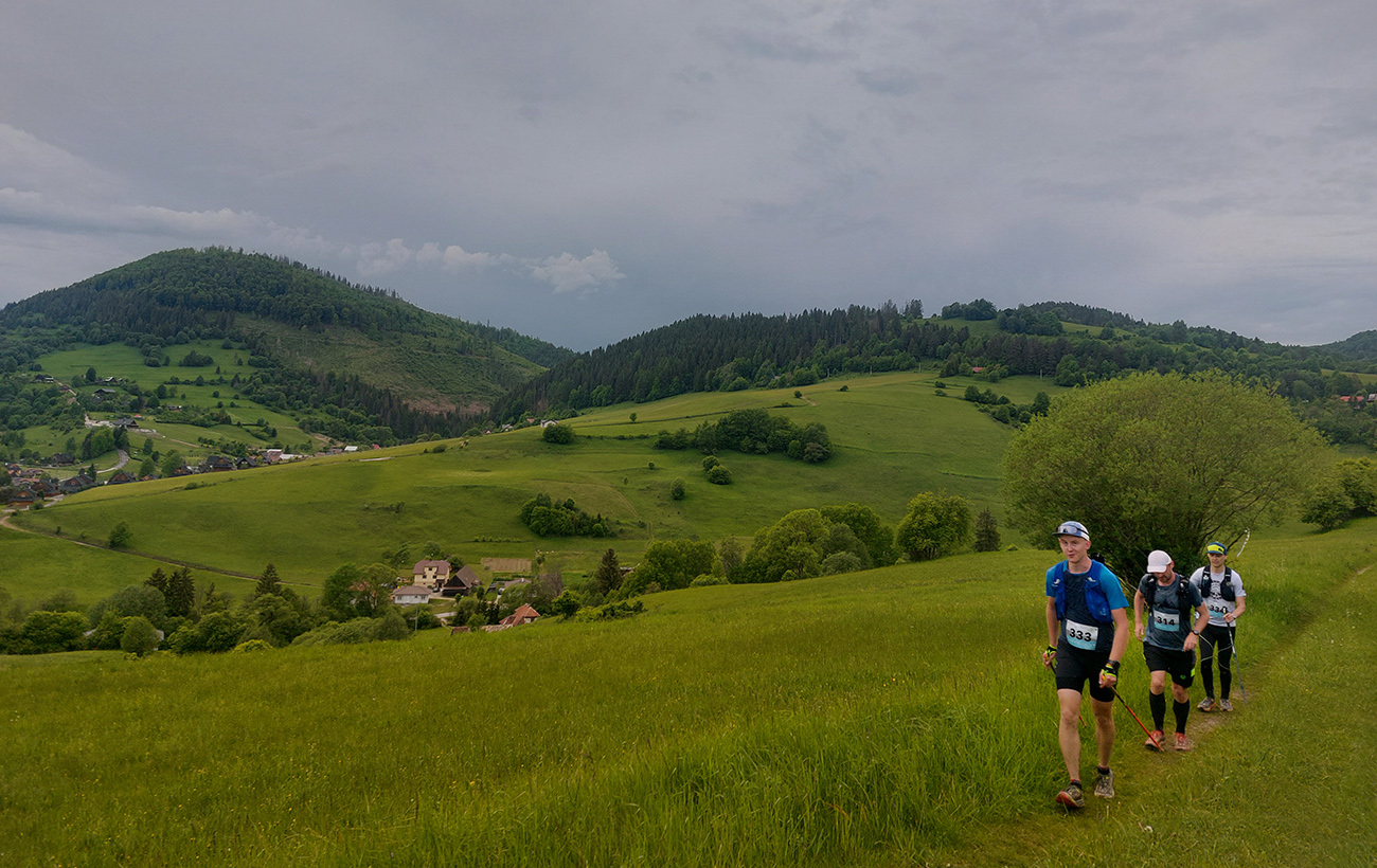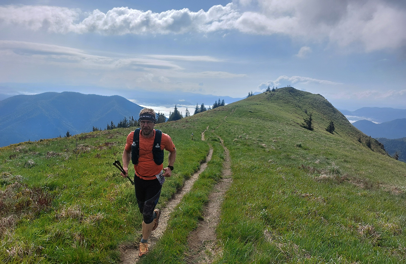 To už sme teda boli na začiatku posledného okruhu, „terchovského“ (40 km). Bol najbehavejší, v prvej polovici v traverze popod ten Pupov (1096 m - najvyššie slovenské bradlo), cez malebné osady a s parádnymi výhľadmi cez dolinu na hrebeň Krivánskej Fatry. Dobré bolo, že sa poriadne zaťahovalo, v diaľkach miestami aj pršalo a hrmelo, nad nami ale nič. Zbeh do rozhicovanej a hučiacej Terchovej, priamo do city, po lúkach, bol pod mrakom príjemnejší.