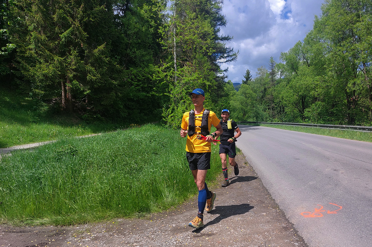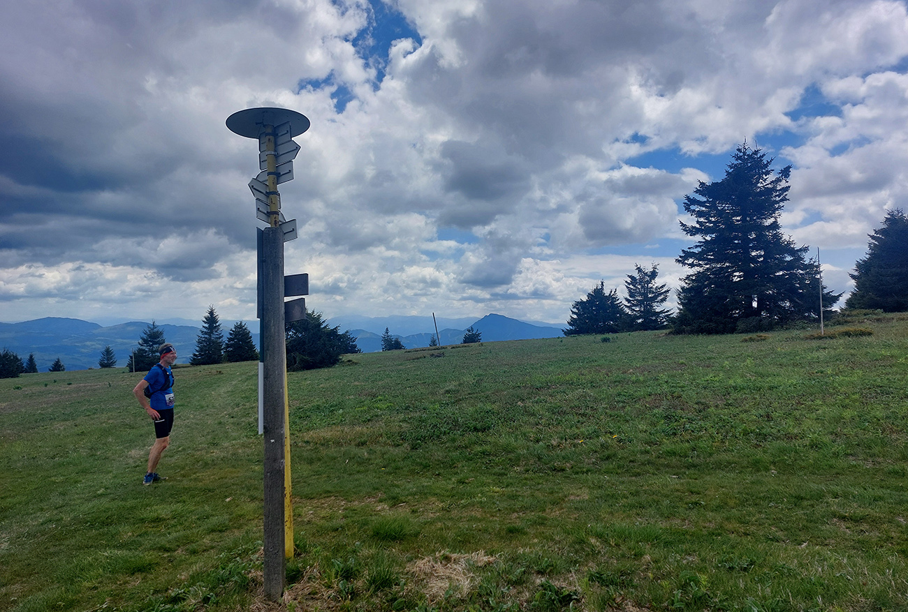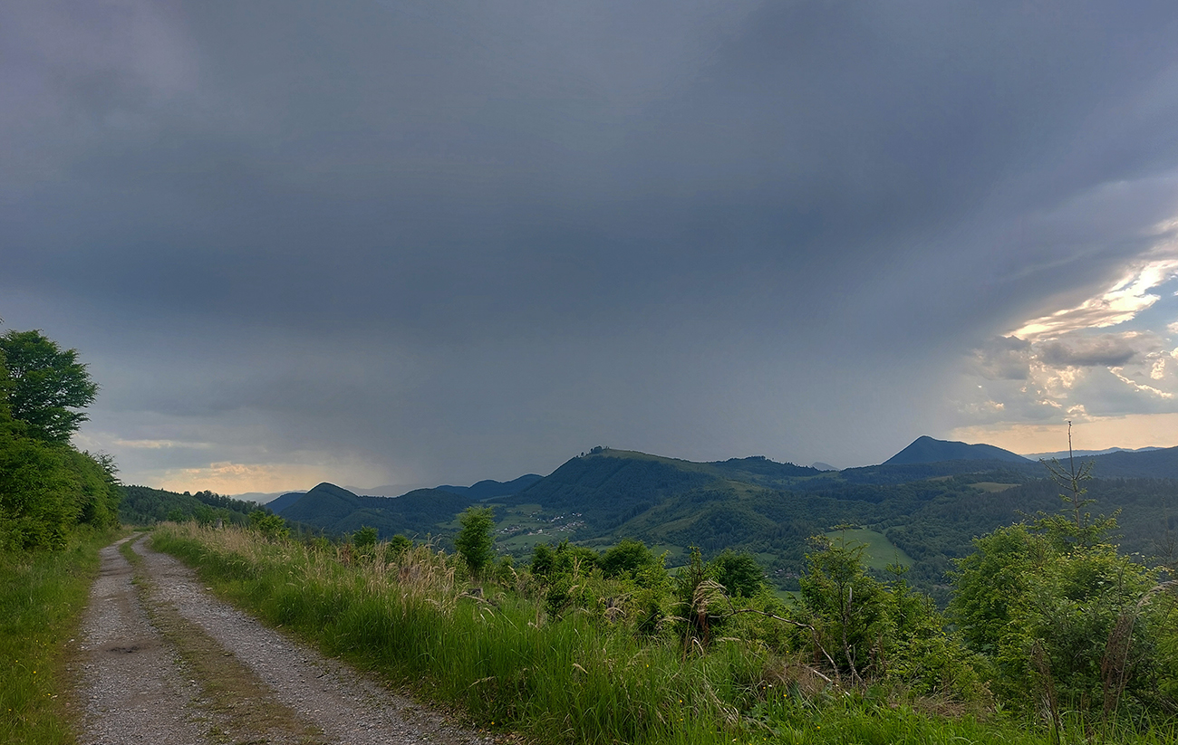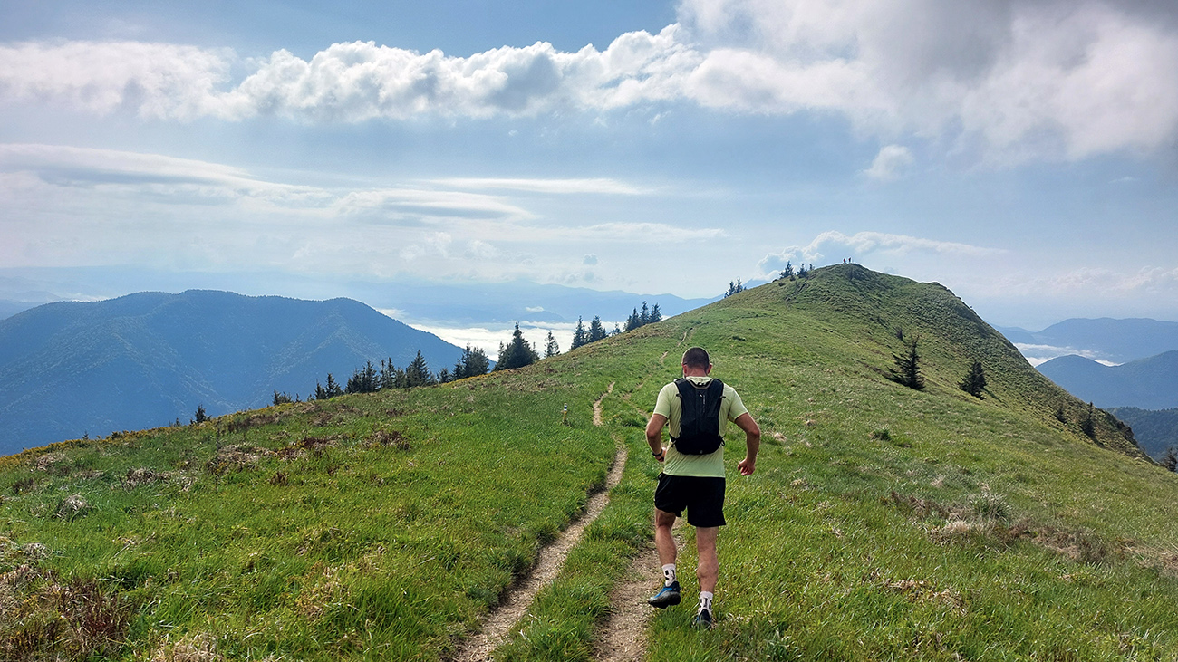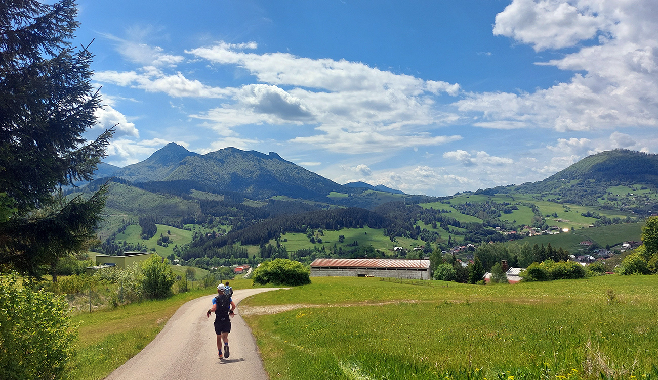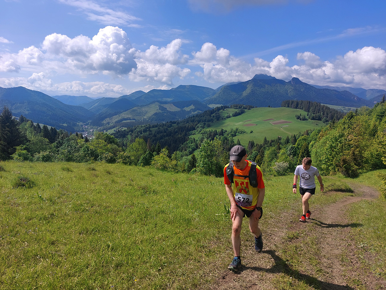 To už sme teda boli na začiatku posledného okruhu, „terchovského“ (40 km). Bol najbehavejší, v prvej polovici v traverze popod ten Pupov (1096 m - najvyššie slovenské bradlo), cez malebné osady a s parádnymi výhľadmi cez dolinu na hrebeň Krivánskej Fatry. Dobré bolo, že sa poriadne zaťahovalo, v diaľkach miestami aj pršalo a hrmelo, nad nami ale nič. Zbeh do rozhicovanej a hučiacej Terchovej, priamo do city, po lúkach, bol pod mrakom príjemnejší.