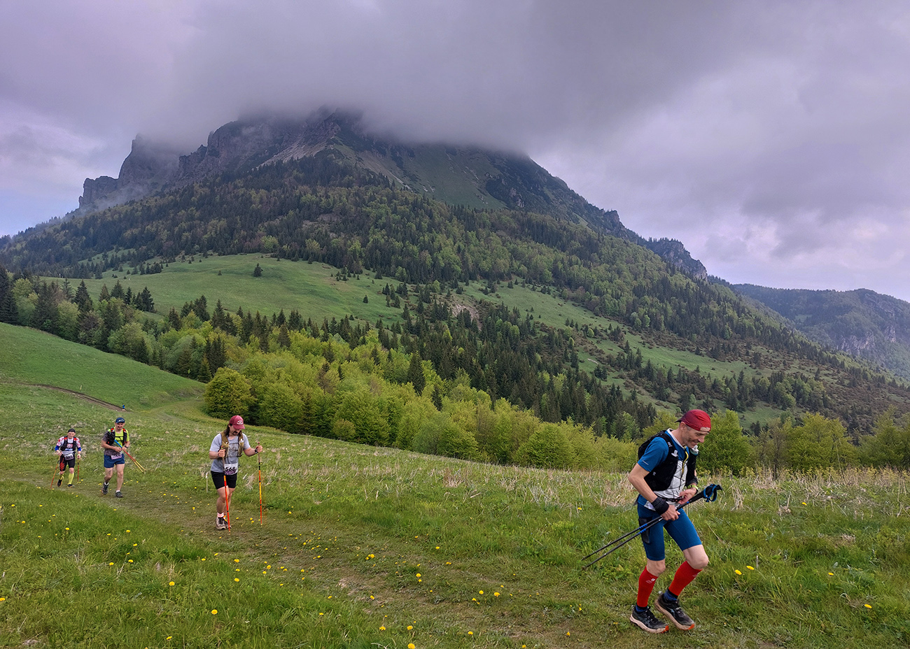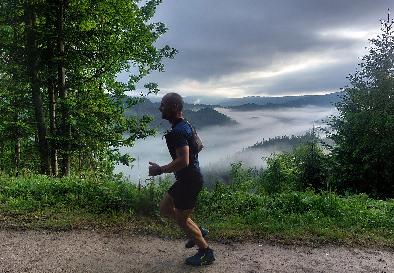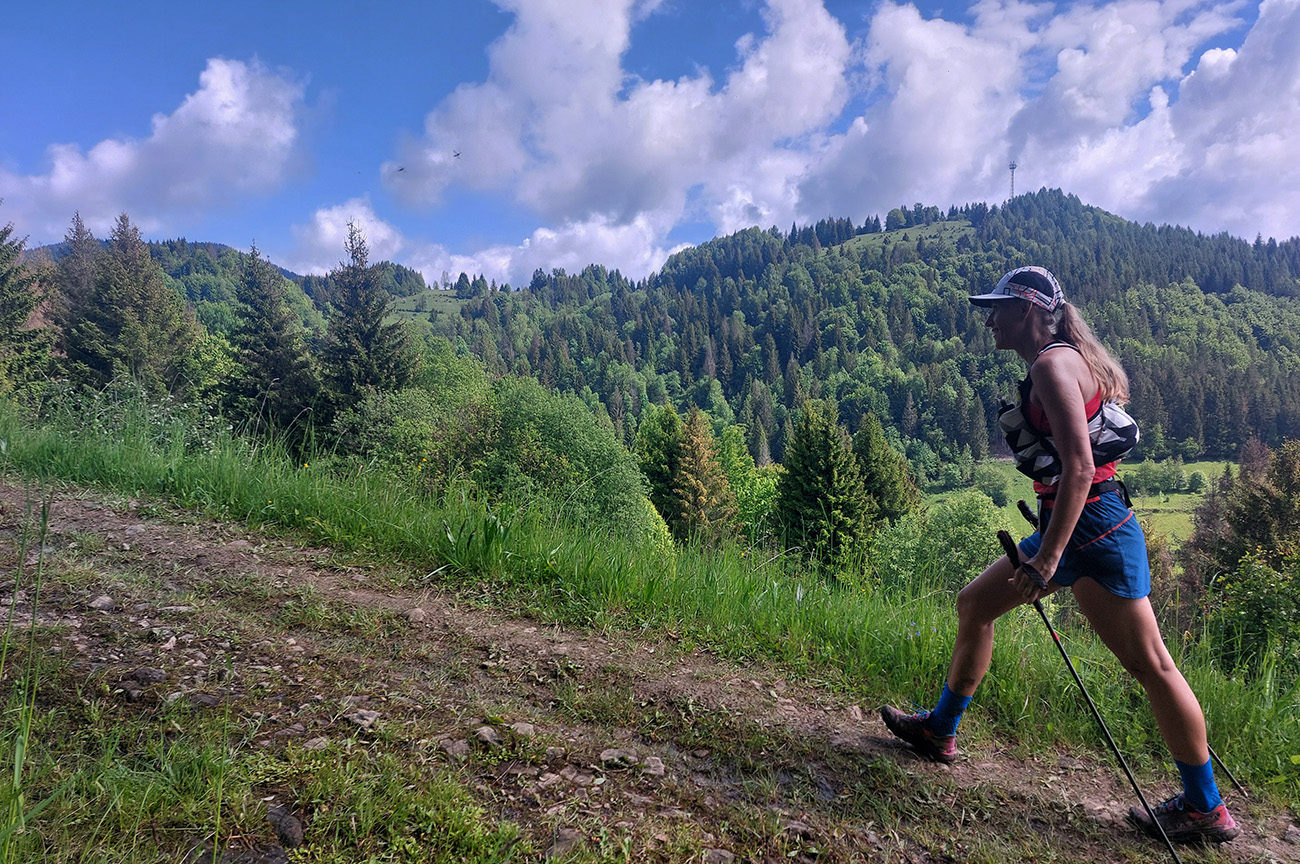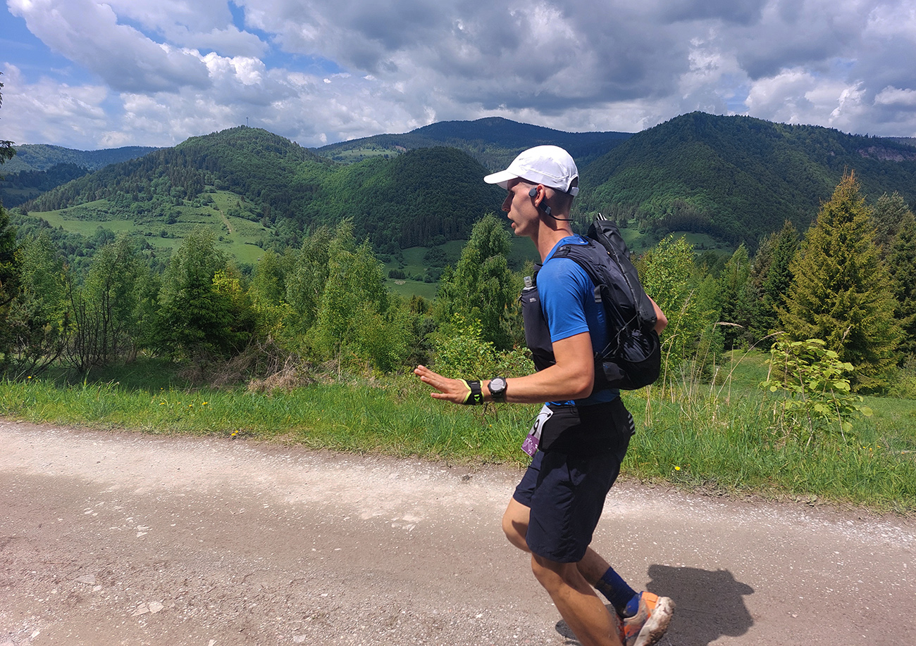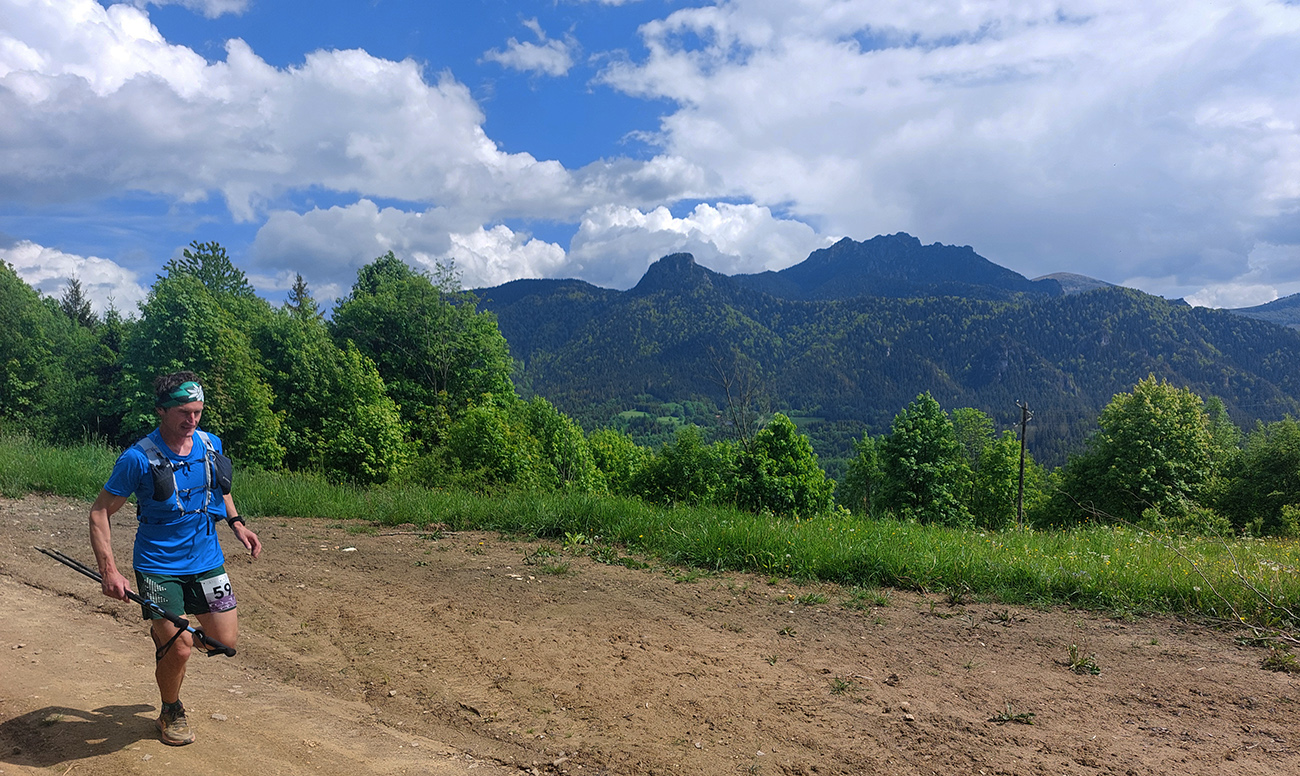 To už sme teda boli na začiatku posledného okruhu, „terchovského“ (40 km). Bol najbehavejší, v prvej polovici v traverze popod ten Pupov (1096 m - najvyššie slovenské bradlo), cez malebné osady a s parádnymi výhľadmi cez dolinu na hrebeň Krivánskej Fatry. Dobré bolo, že sa poriadne zaťahovalo, v diaľkach miestami aj pršalo a hrmelo, nad nami ale nič. Zbeh do rozhicovanej a hučiacej Terchovej, priamo do city, po lúkach, bol pod mrakom príjemnejší.