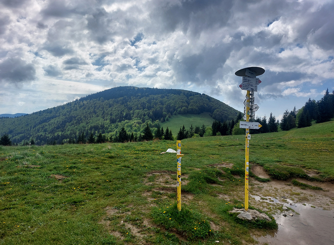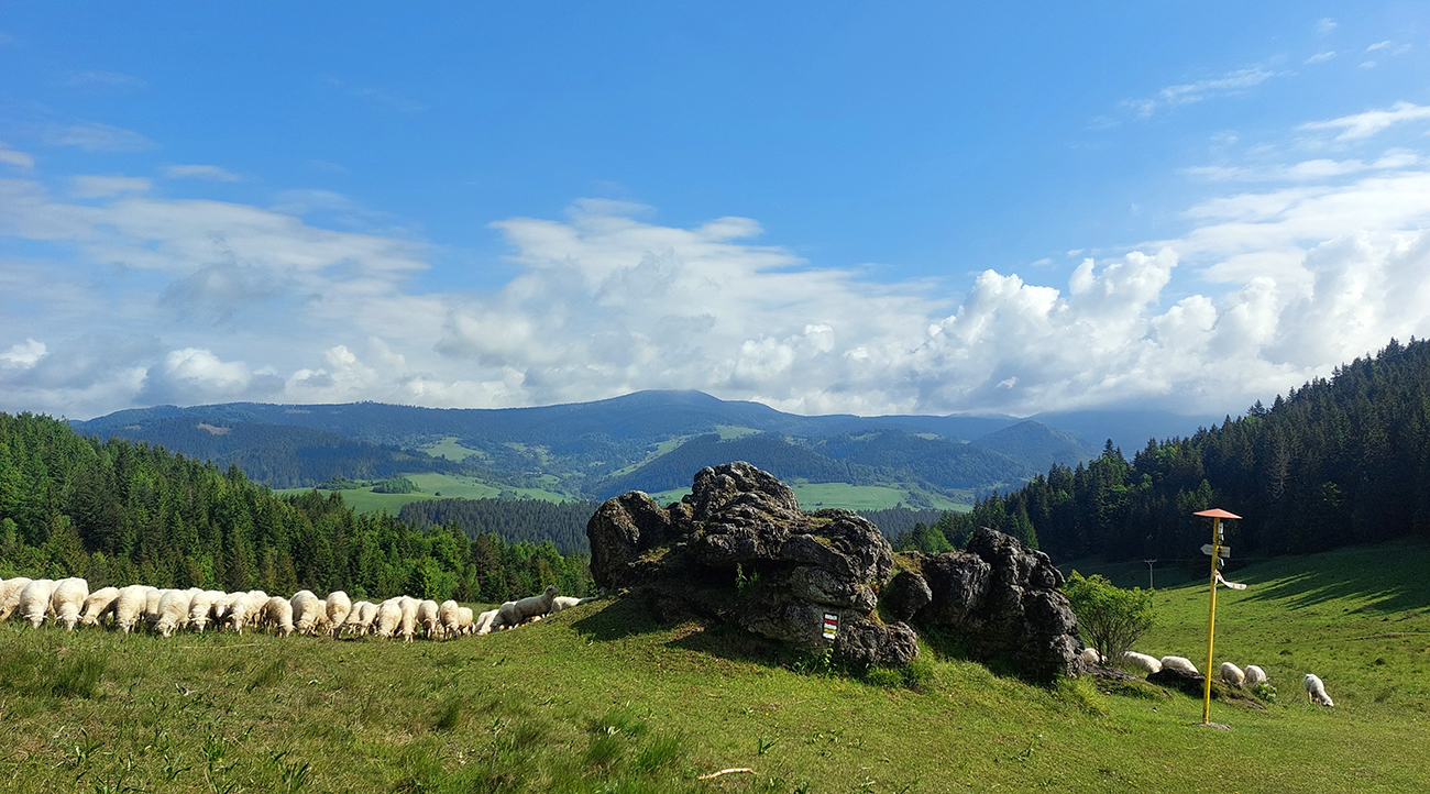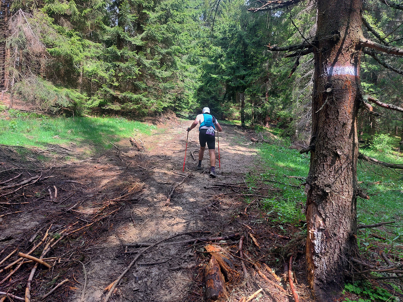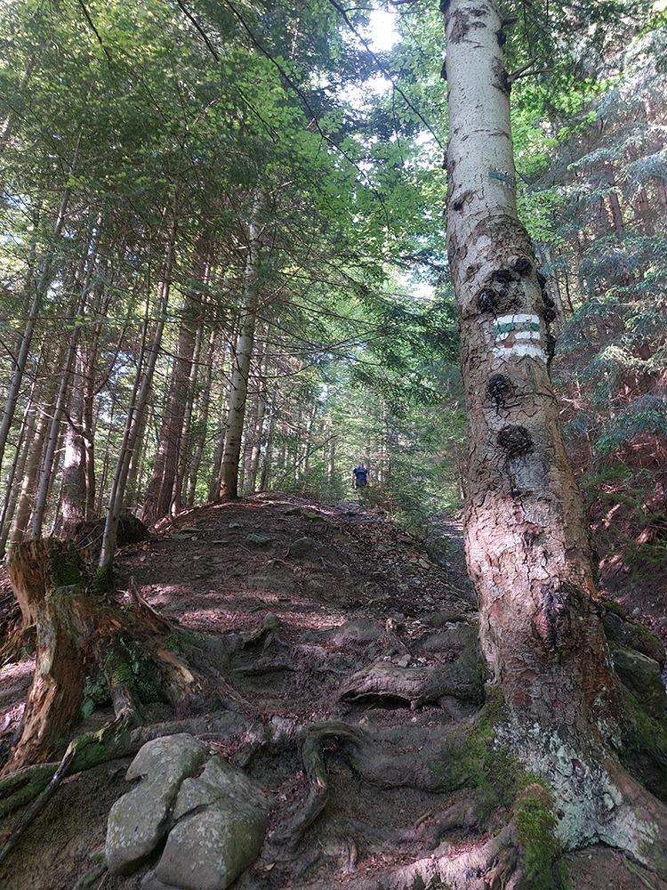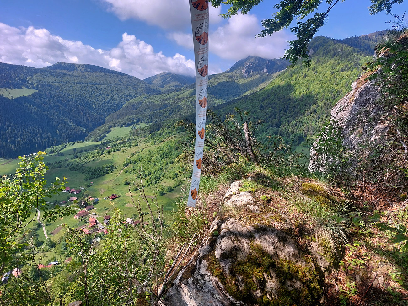 Súperi odkontrolovaní, tak davaaaj z Medziholia popod Rozsutec do Príslopu, po žltej. Krásny traverz! Na záver miestna špecialitka – takmer neexistujúci, miestami „štvornožkovací“ chodník ponad bralá Čapice (875 m), s výhľadmi do hlbokej jamy, kde sa krčí Biela. Strmý zbeh do Zázrivej je naopak otočený na sever, ukazuje dominanty Oravskej Magury, ktoré sme sa chystali okúsiť onedlho. Len škoda, že výhľady sú krížom cez poťažobný bordel a vyholené stráne.