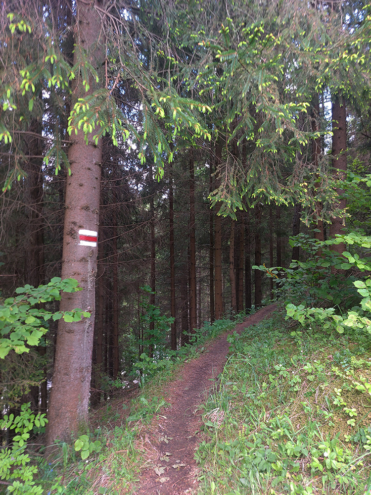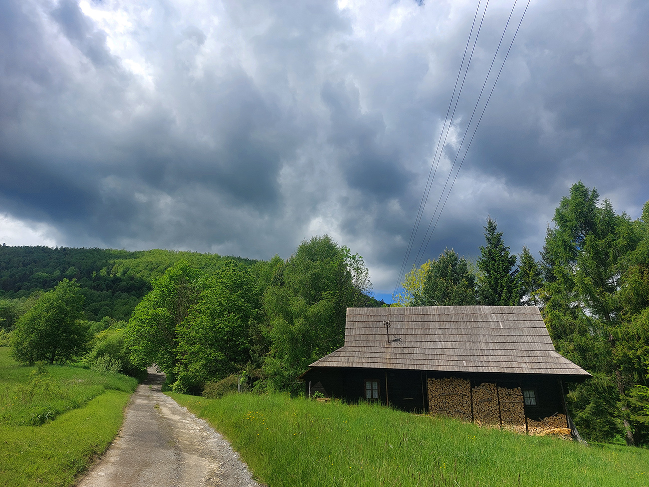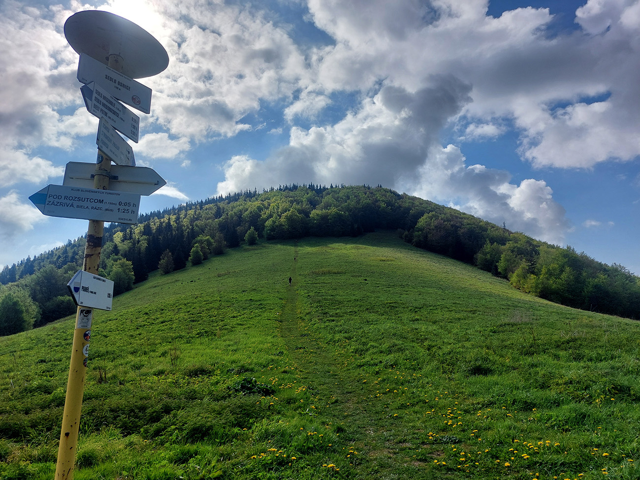 Ďalšia obžerstvovačka na Kubínskej holi padla vhod, pred dlhočizným a spočiatku aj strmizným zostupom nazad do Zázrivej. Výhľady exkluzívne, aj keď pre rýchlejších proti slnku a už aj cez zakalený vzduch, ako sa vlhkosť zo zeme dvíhala a zárodky búrkových mrakov vytvárala. Oskar poriadne prikuroval. Dole potom výbeh z lesa na lúky znamenal pohľady najmä doprava, na Javorinku a spol., až na asfaltke tesne nad dedinou sa v plnej kráse ukázali dominanty malofatranské.
