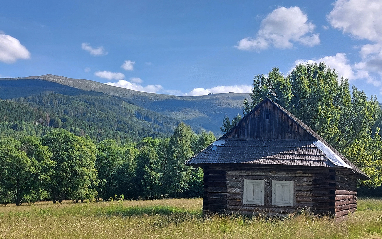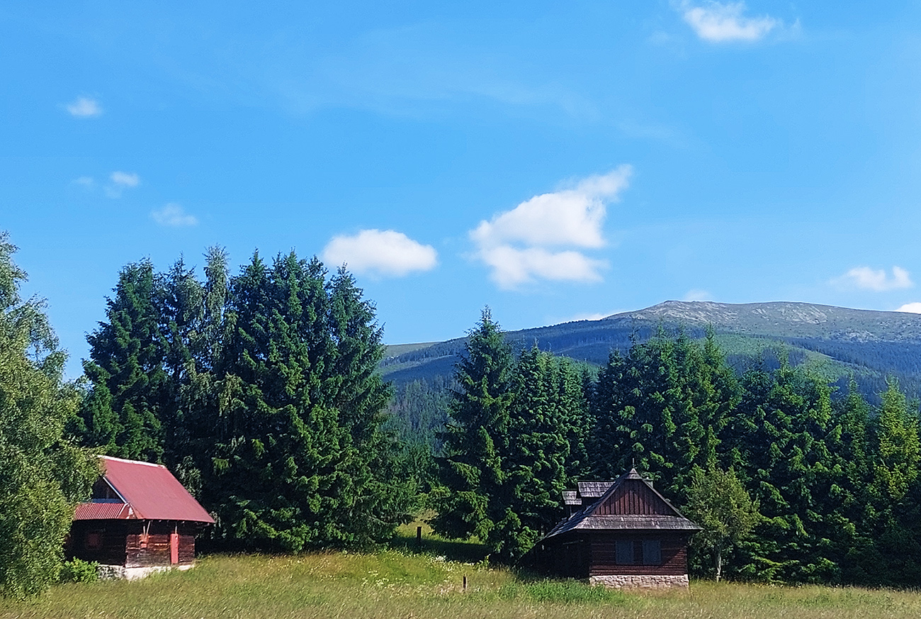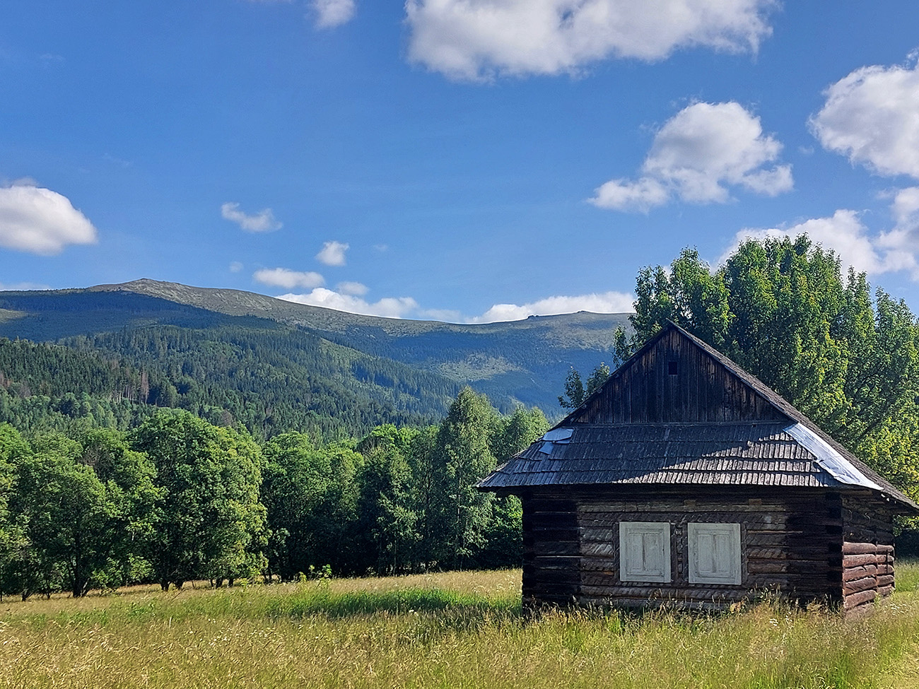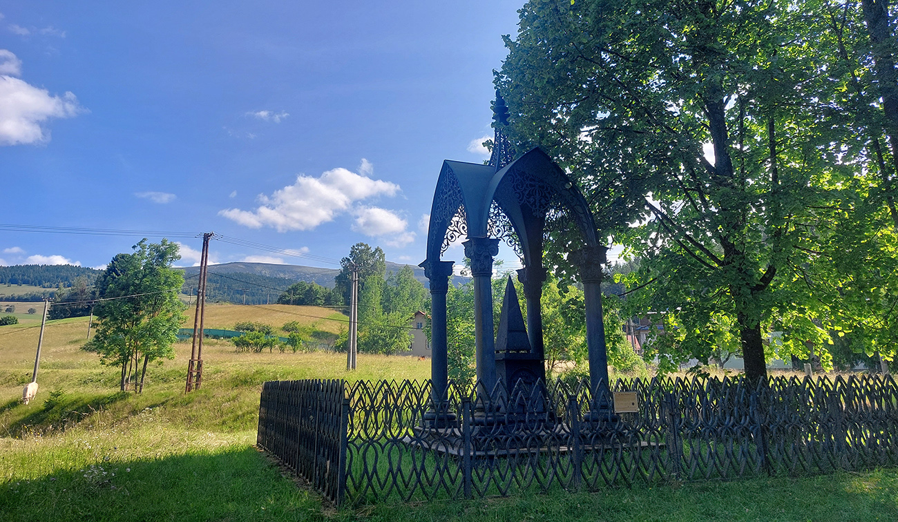 Cez Novú aj Pohorelskú Mašu pár stoviek metrov starých, zubatých asfaltiek, medzi nimi nevyhnutná, krátka vsuvka po hlavnej, ktorú opúšťam pri známom coburgovskom železnom altánku. Popri cintoríne mierne stúpam smerom k Pohorelej, zas cez lúky.