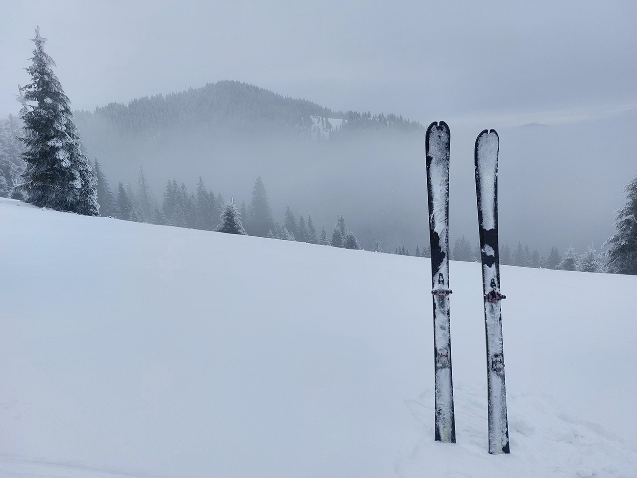 Rozpačitá zima, rozpačité počasie. Aladiny hlásia zamračené, vo vysokých polohách mliečno. V nižších nieto snehu, treba trafiť medzivrstvu! Sever Veľkej Fatry je na to ideálny, ideme ta. Chceli sme síce na Smrekovicu, ale zabudnuté reťaze, tak radšej len do Hrabova a odtiaľ hore. Aj s garanciou pohodlného zlyžovania potom dole. Takže po krátkom pešovaní od „Skialp Parkingu“ naskakujeme do lyží pod lanovkou a po chvíli ťapkania po piste už točíme doľava na Medvediu cestu. Posnežilo asi milimeter, zakrylo medvedie kamienky, ale len tak esteticky, začiatok nie je príjemný. No rýchlo sa to zlepšuje. Ešte krátky a strmší úsek pred východom na Vlkolínske lúky je plný kameňov, ale smerom hore je to ok. Dole už by som tade nešiel.