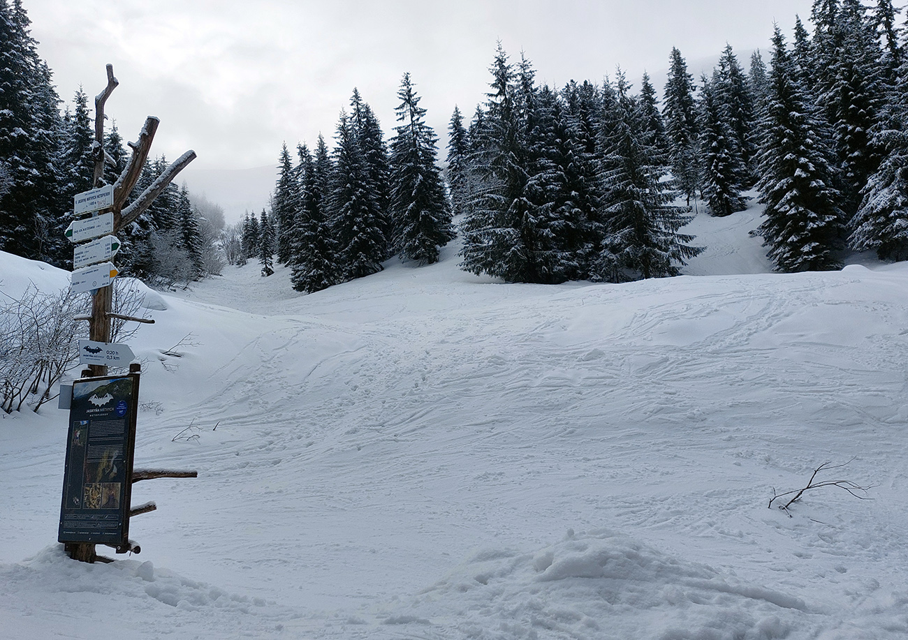 Tak sme smerom dole triafali len od tyče k tyči, ale prekvapivo dobrá lyžba. Po rozchodenom, ale rovnom. A keď sme si už trúfli vrhnúť sa doprava, trafili sme také dobré sňahy, že sa aj ujúkanie ozvalo.