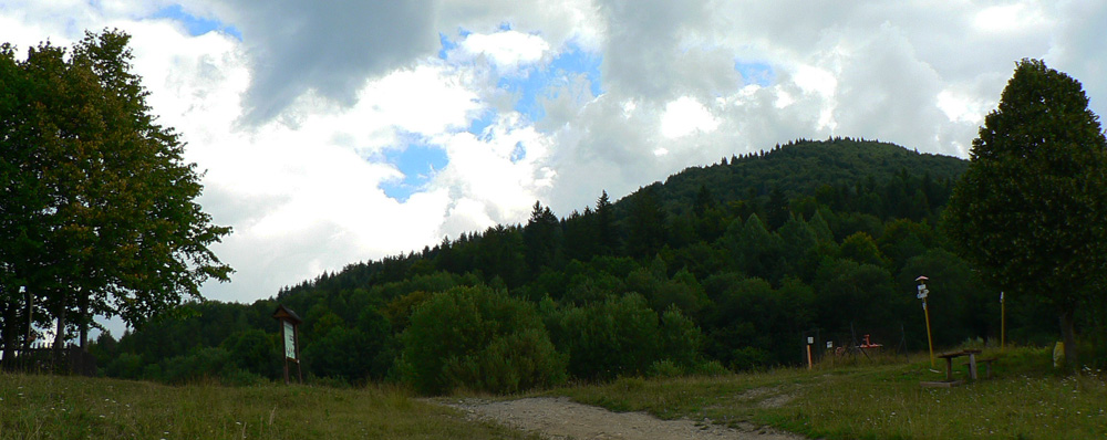 Na Poľanách sa napájam na zelenú (náučný chodník, cyklotrasa aj turistická je zelená) a mal by som ísť popod kopec na sever traverzom. Ale času dosť, ide sa na Pupov! Bajk do ruky a tlačiiiiiť! Mapa sľubuje zhora kruhový výhľad. Zdola to tak nevyzerá.