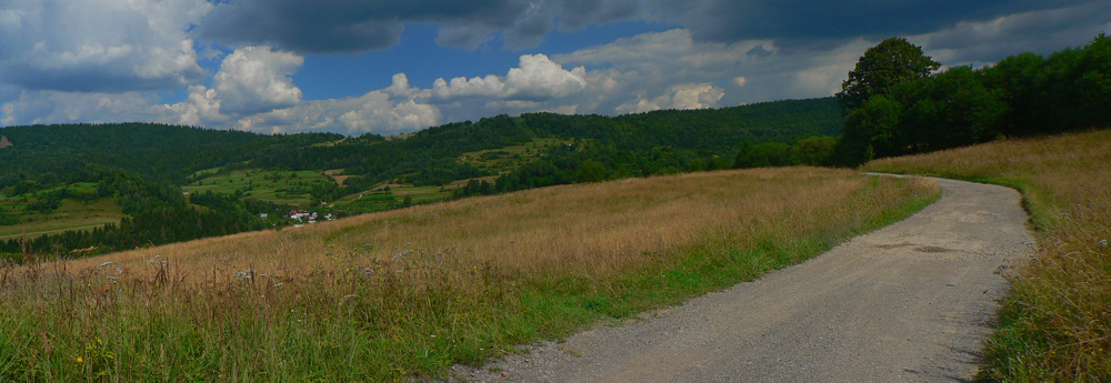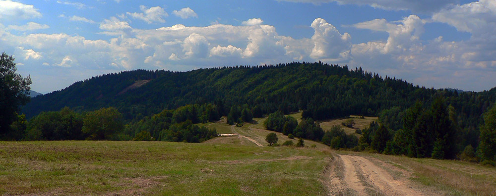 Konečne zas krásne lúky po širokom hrebeni, ale aj so širokou zvážnicou. A ťažia tu fest, na ceste hrubá vrstva ani nie prachu, ale púdru! Smrť pre ložiská, radšej idem po tráve vedľa. Výhľady sú najmä na sever – vidno cestu z Oravy na Kysuce aj vodárenskú nádrž Nová Bystrica, ale hlavne obrovské holoruby. Pohľady na juh cez dolinu sú zriedkavé, ale krajšie.